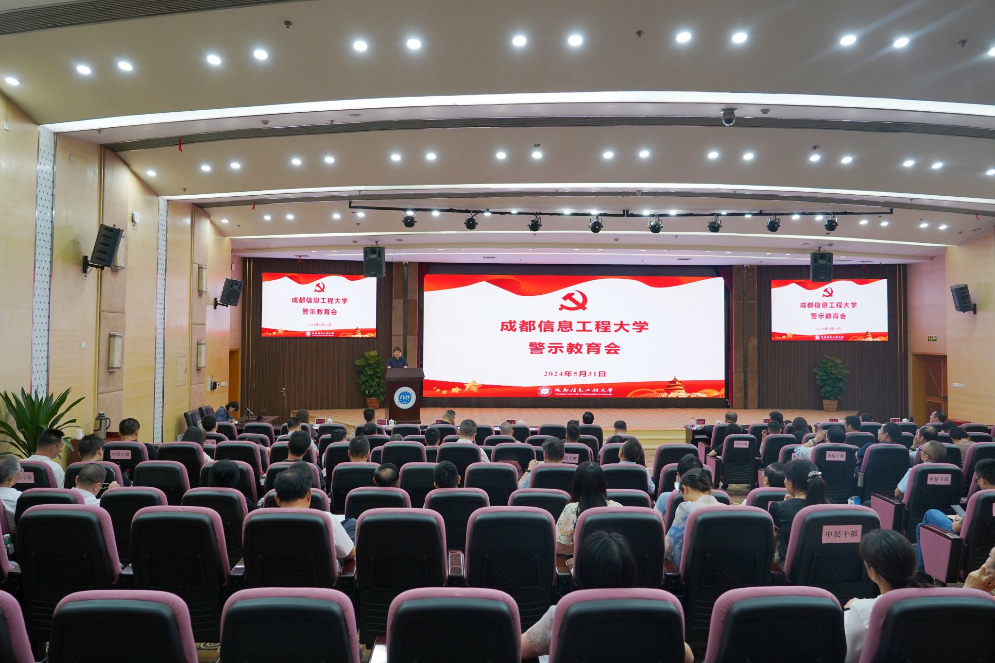 【本网讯】5月31日,学校党委在航空港校区国际会议厅召开党纪学习教育警示教育会,全体校领导,全体中层干部,部分科级干部参加了警示教育会。沈火明主持会议并讲话。他强调,要深入学习贯彻习近平总书记关于全面加强党的纪律建设的重要论述,把警示教育作为开展党纪学习教育的重要举措,引导广大党员干部在以案说德、以案说纪、以案说法、以案说责中受警醒、明底线、知敬畏。