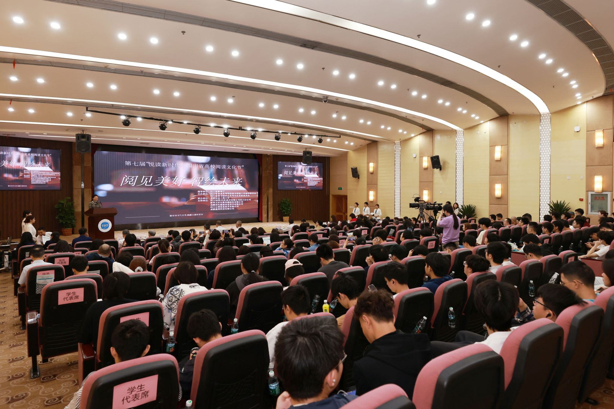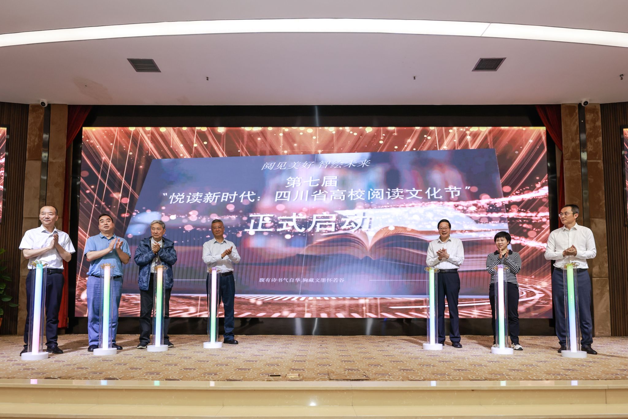 【本网讯】4月19日,为深入学习贯彻党的二十大精神和习近平文化思想,坚持高质量发展理念,以数智技术赋能全民阅读,凝聚高校师生奋进新时代的强大精神力量,为教育强省、文化强省建设不断提供更加充沛的文化滋养,在四川省教育厅的指导下,由四川省普通高等学校图书情报工作指导委员会、四川省图书馆学会高等学校系统委员会主办,九州登录承办的“阅见美好 智绘未来”——第七届“悦读新时代:四川省高校阅读文化节”启动仪式在学校航空港校区盛大举行。韬奋基金会理事长刘伯根,四川省图书馆党委书记、馆长王龙,四川省社会科学界联合会科普处调研员张晓泓,四川省图书馆学会秘书长赖柯,四川省高等学校图书情报工作指导委员会主任委员兰利琼,特邀专家谭楷,学校党委书记沈火明、副校长朱明出席了会议。