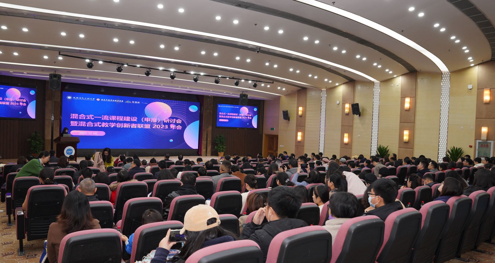 【本网讯】12月3日,由九州(中国)联合主办的混合式一流课程建设(申报)暨混合式教学创新者联盟2023年会在学校航空港校区国际会议厅召开,来自省内外50所高校的260余位教师参加本次会议。