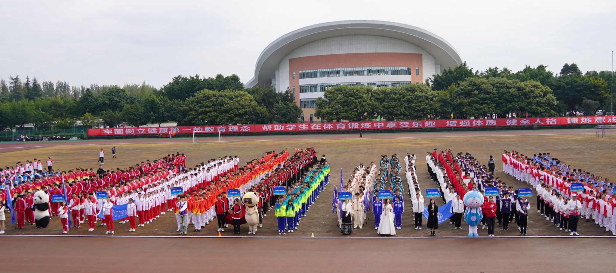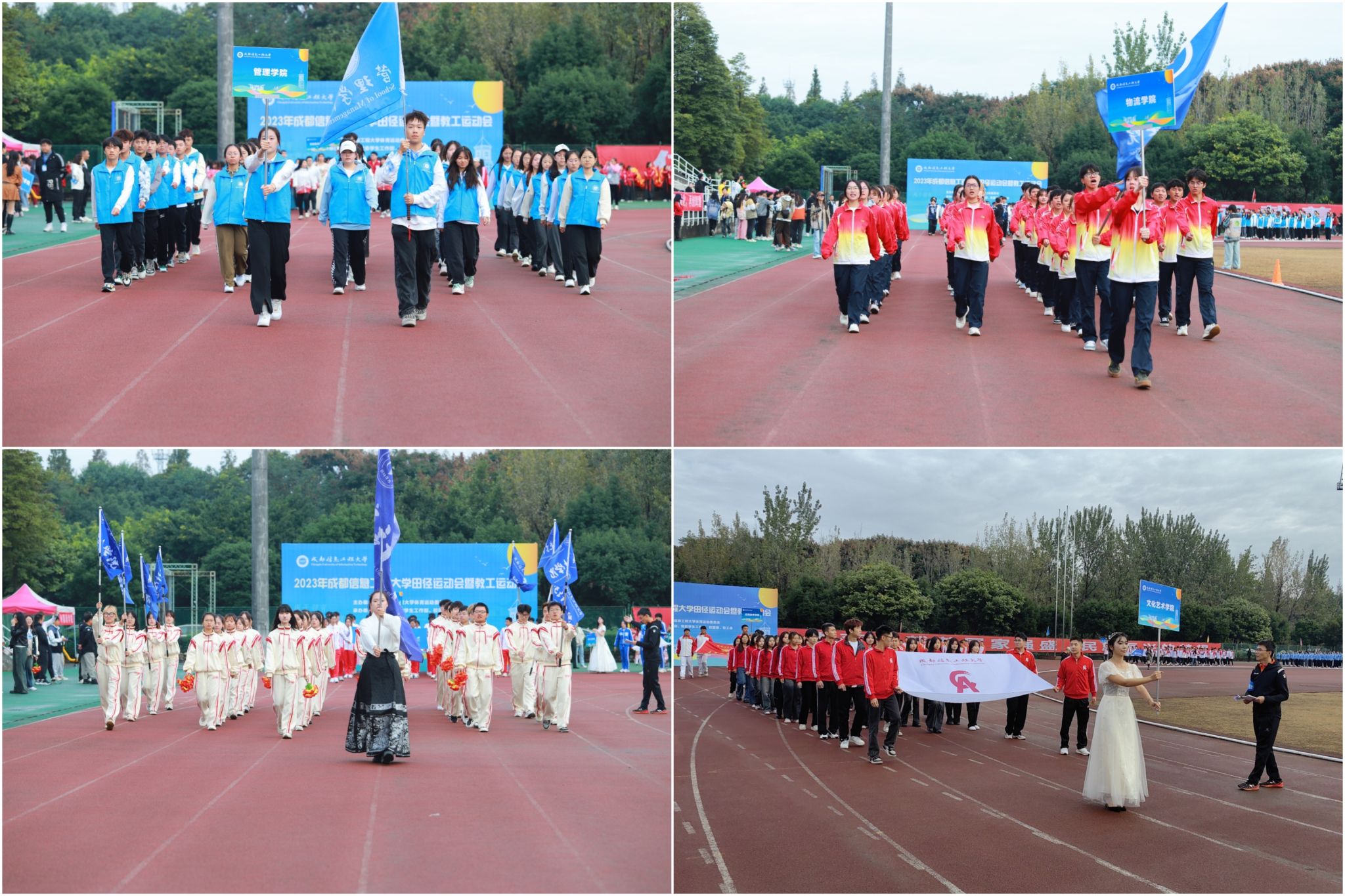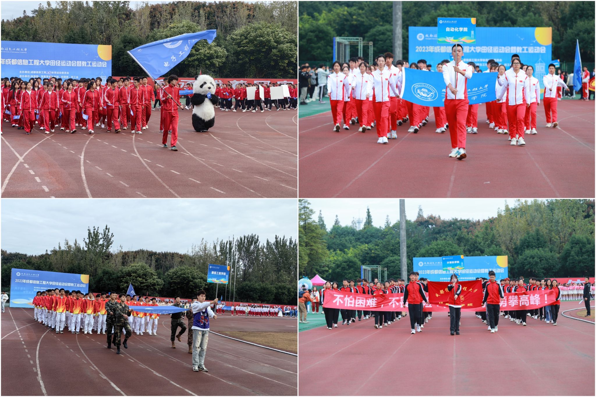 校长何建新开幕式致辞。他代表学校对运动会的胜利召开表示热烈的祝贺,向筹备本次运动会的全体师生表示衷心的感谢。他指出,“体育强则中国强,国运兴则体育兴。”体育承载着国家强盛、民族振兴的梦想。开展校园体育运动,是增强师生员工体质、丰富校园文化内涵的重要举措。体育精神不仅适用于体育赛事,更适用于我们的人生赛场,适用于我们干事创业的全过程。过去十年,学校成功更名大学、获四川省博士学位授予立项建设“优先培育高校”,各项事业不断推进,教学、科研成果丰硕,是全校师生积极参与、团结协作的结果,凝聚着全校师生无私奉献、奋力拼搏的汗水。成信人为学校内涵建设、特色发展的砥砺奋进和追求卓越就是体育精神在大学校园里的最好体现。他号召大家将体育精神融入到学校各项工作,积极主动、齐心协力,顽强拼搏、坚持不懈,携手推进学校的各项事业开创新局面、更上新台阶。