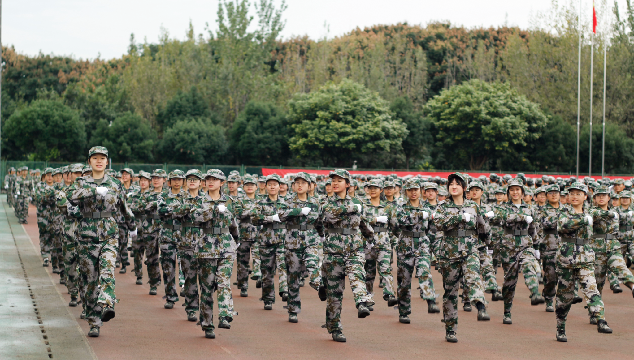 同学们行云流水地变换队列,摆出“九州登录”“1951-2023”“战斗机”等大气磅礴的图案,表达了成信学子对祖国的热爱以及对学校的祝福,展现了2023级学子锐意进取、追求卓越的精神风貌和军事训练的丰硕成果。