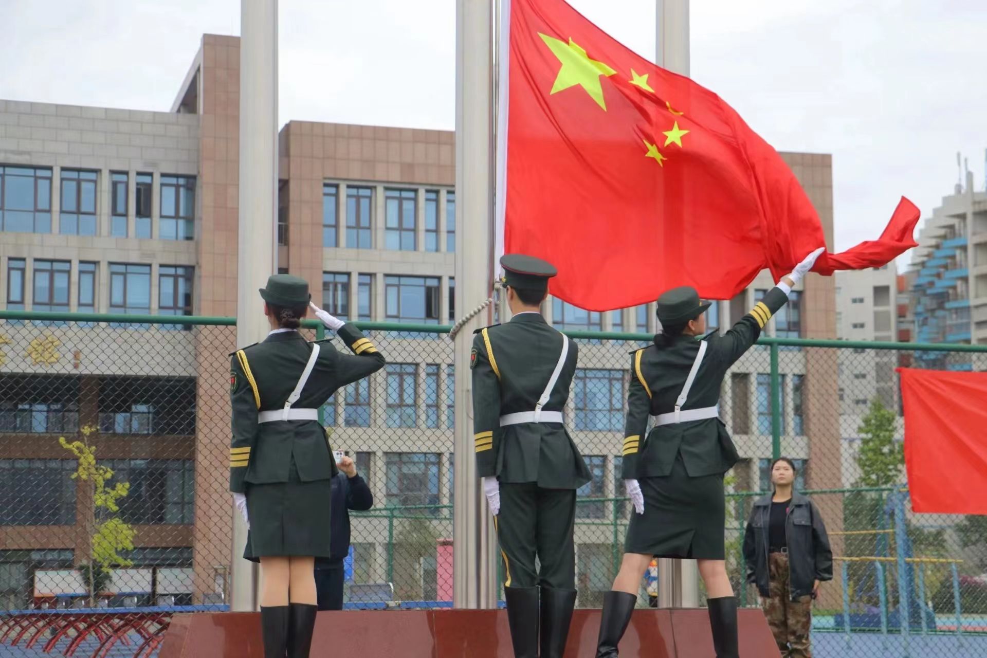 汇报会现场举行了升国旗仪式,在雄壮激昂的国歌声中,全体参会人员起立,2023级参训学生身姿挺拔立正,向冉冉升起的国旗行注目礼。