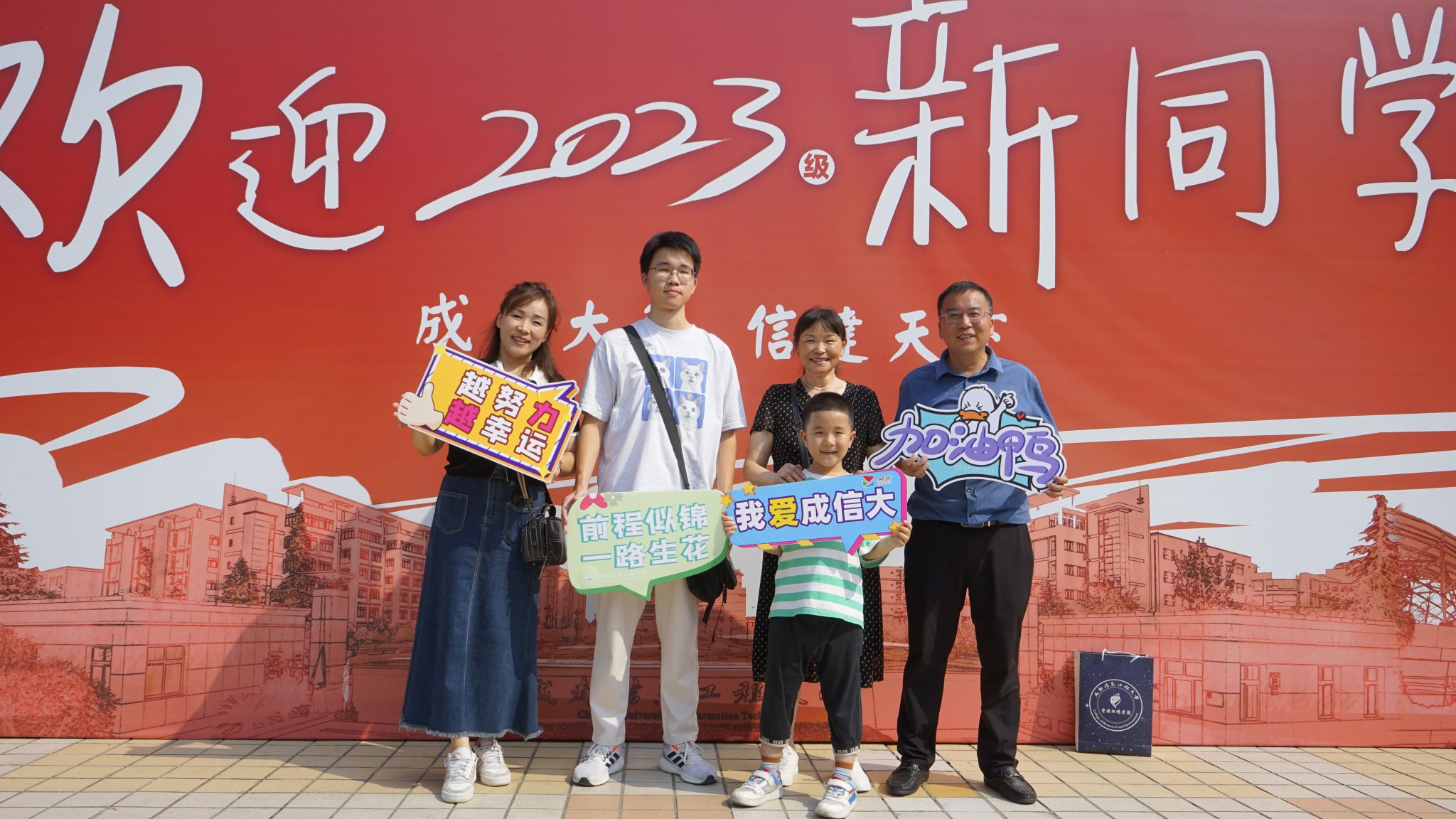 成信大欢迎你,2023级新同学!愿你们志存高远、大展宏图!愿你们秉承“成于大气 信达天下”的校训精神和“尊师、好学、励志、笃行”的优良学风,在大学新征程和青春纪念册上留下勤勉奋进、勇于担当、求实创新、立志报国的闪亮印迹和青春荣耀。