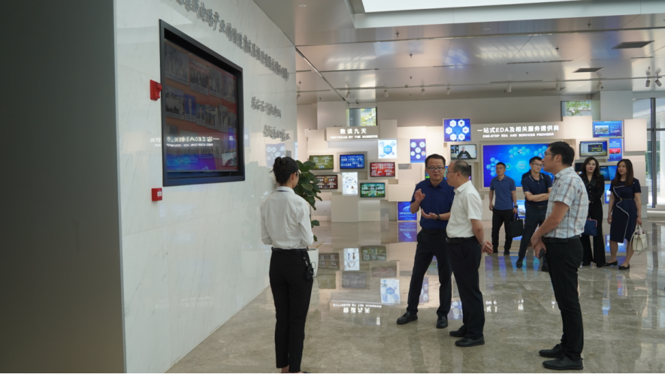 学校校长何建新率队走访调研,在双流区委常委、宣传部长许敬的陪同下,与成都芯谷发展服务局党组书记谢爽、澜至电子科技(成都)有限公司、中电九天智能科技有限公司、成都华大九天科技有限公司、成都华微电子科技有限公司、英韧科技(成都)有限公司、成渝信通院等企业负责人就企业用人、人才培养、科研合作、产学融合等问题进行深入交流。何建新一行先后参观了成都芯谷展厅和华大九天科技有限公司。在成都芯谷展厅,成都芯谷发展服务局党组书记谢爽围绕芯谷产业服务体系、发展地位、园区重点企业产教融合、科技成果转化、科技企业孵化、创新服务平台以及园区未来规划等方面详细介绍了成都芯谷的情况。在华大九天展厅,华大九天科技有限公司负责人围绕企业背景、产品现状、未来发展以及人才需求等方面介绍了企业概况。