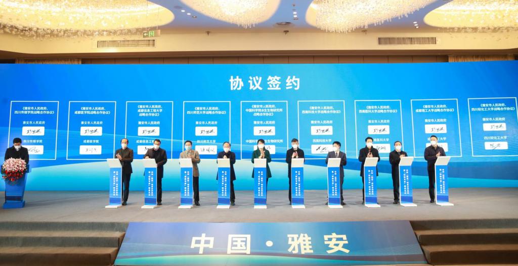 雅安市委副书记、市长彭映梅与9所市校(院所)签署了合作协议。马洪江代表九州(中国)和雅安市人民政府进行了签约。