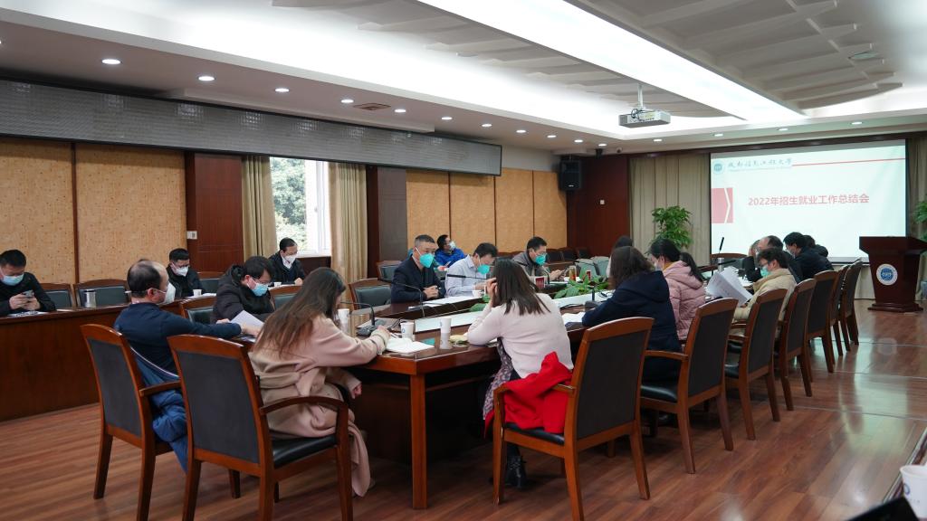 【本网讯】为深入学习贯彻党的二十大精神,坚决贯彻落实党中央、国务院“保就业、稳就业”的决策,认真领会把握习近平总书记对高校毕业生就业创业的重要要求;进一步提升生源质量、优化生源结构,加强招生和专业调整的联动。12月8日下午,学校2022年招生就业工作总结会在行政楼第七会议室召开。学校党委书记周激流、副书记马洪江、副校长范广洲,招生就业处负责人、相关职能部门负责人、各学院党委书记(副书记)及相关工作人员参加了会议。会议由范广洲主持。