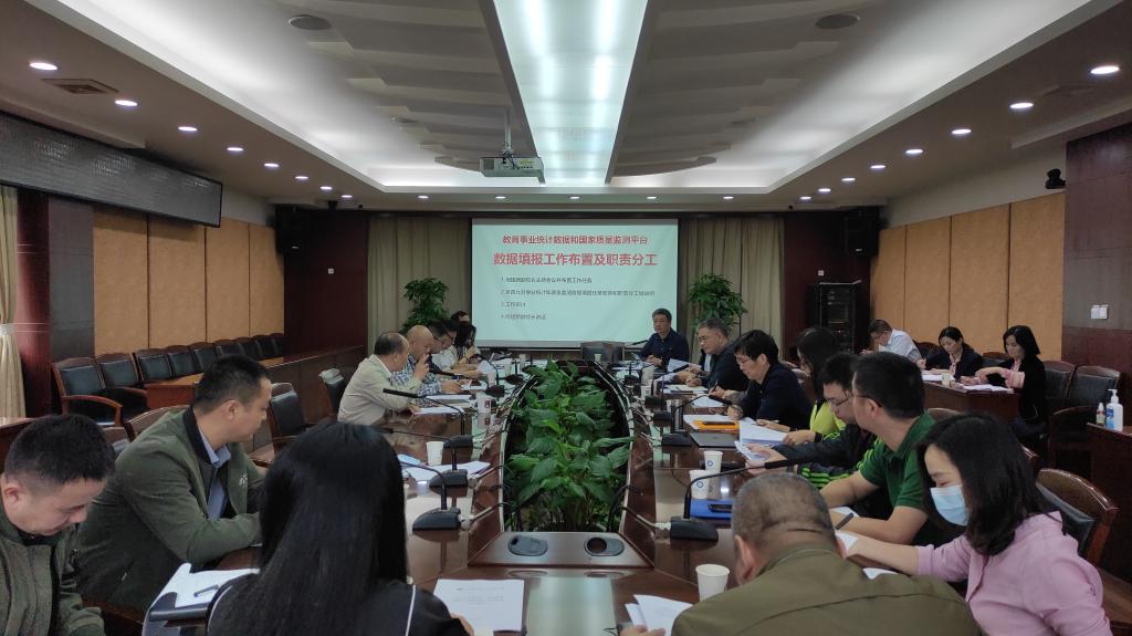 何建新谈到,由于受到疫情和相关工作影响,今年教育事业统计数据和国家质量监测平台数据的填报工作时间紧、任务重。他要求,各部门要提高政治站位,充分认识到两项数据填报工作的重要性,进一步加强部门信息化建设,做好数据的常态化管理和采集工作。各部门要深入学习、理解两项重要数据的指标内涵,严格按照学校责任分工和工作要求,加强沟通协作,按时、高质量完成数据统计工作。