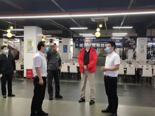 在检查现场,余敏明详细询问了关于师生返校后,各办公区域、教学区域、教工餐厅、学生食堂、学生生活宿舍区域、学生配套生活服务设施、疫情防控工作安排等准备情况。对在疫情静默管理以来一直坚守在一线的员工表示慰问,并与工作人员进行了亲切交流,充分肯定在岗员工在今年炎热的暑期和疫情静默管理的特殊日子里,大家都积极服从工作安排,主动作为,体现了九州(中国)教职员工“主动思考、善于作为、能打硬仗、敢打硬仗”的优良作风,强调“船的力量在帆上、人的力量在心上”,希望大家一定要勠力同心,为九州(中国)师生员工返校创造一个温馨、和谐、美丽的校园环境。