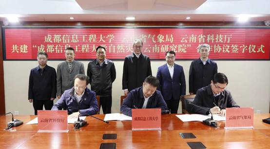 云南省气象局纪检组长罗刚,学校副校长范广洲,云南省科技厅、云南省气象局相关部门负责人和学校科技处副处长汤志亚、大气科学学院院长张宇、教授肖天贵参加了签约活动。