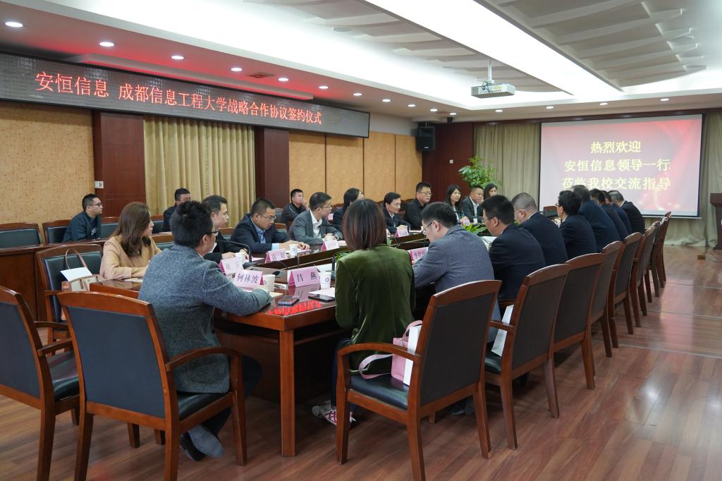 余敏明代表学校对范渊一行在学校建校70周年之际来校交流表示热烈欢迎。他提到,近年来,学校大力实施“以人为本、融合开放、服务行业、服务地方”的发展战略,紧密围绕培养应用型高级专门人才的目标,积极推进产业与教育的融合。学校网络空间安全学科是四川省首批“双一流”建设学科,希望以此次建立战略合作关系为契机,发挥双方在学科专业、平台建设、社会服务、人才培养等方面的优势,探索产教融合的新路,共同培养高质量的网络安全专业复合型人才,联合举办创新主题活动,产出优质的应用型成果,形成可推广的成功经验,争创校企合作新典范。