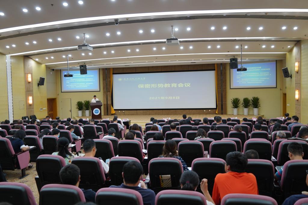 【本网讯】为进一步做好新形势下学校保密工作,提高广大教职工的保密意识和能力,9月8日下午,学校在国际会议厅举行保密形势教育报告会。学校全体校领导,科级以上干部,各学院科研骨干教师参加了报告会。