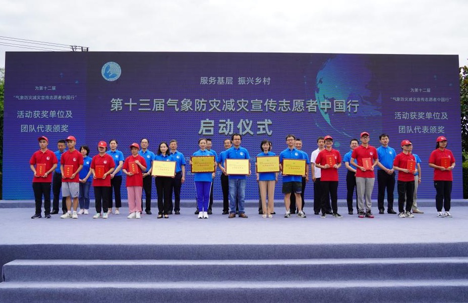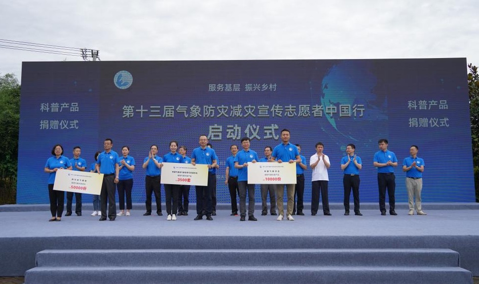 与会领导共同启动了第十三届“气象防灾减灾宣传志愿者中国行”活动。