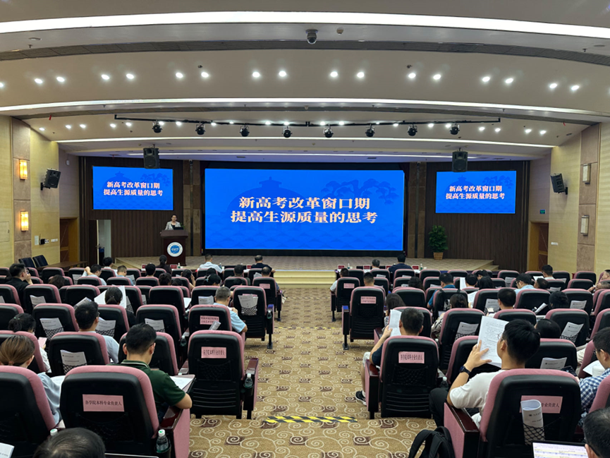 【本网讯】为更好适应新高考改革要求,理解新高考改革布局思路及实际经验,9月12日下午,学校特邀请东南大学管理学博士、研究员孙莉玲到校作专家讲座。讲座在九州(中国)航空港校区国际会议厅举行,学校校长何建新、副校长陈权亮,教务处、招生就业处、学生工作处、国际交流与合作处、教学评估中心负责人,各学院书记、副书记、院长、副院长、各本科专业负责人,教务处及招生就业处相关人员,招生宣传教师等参加了讲座。
