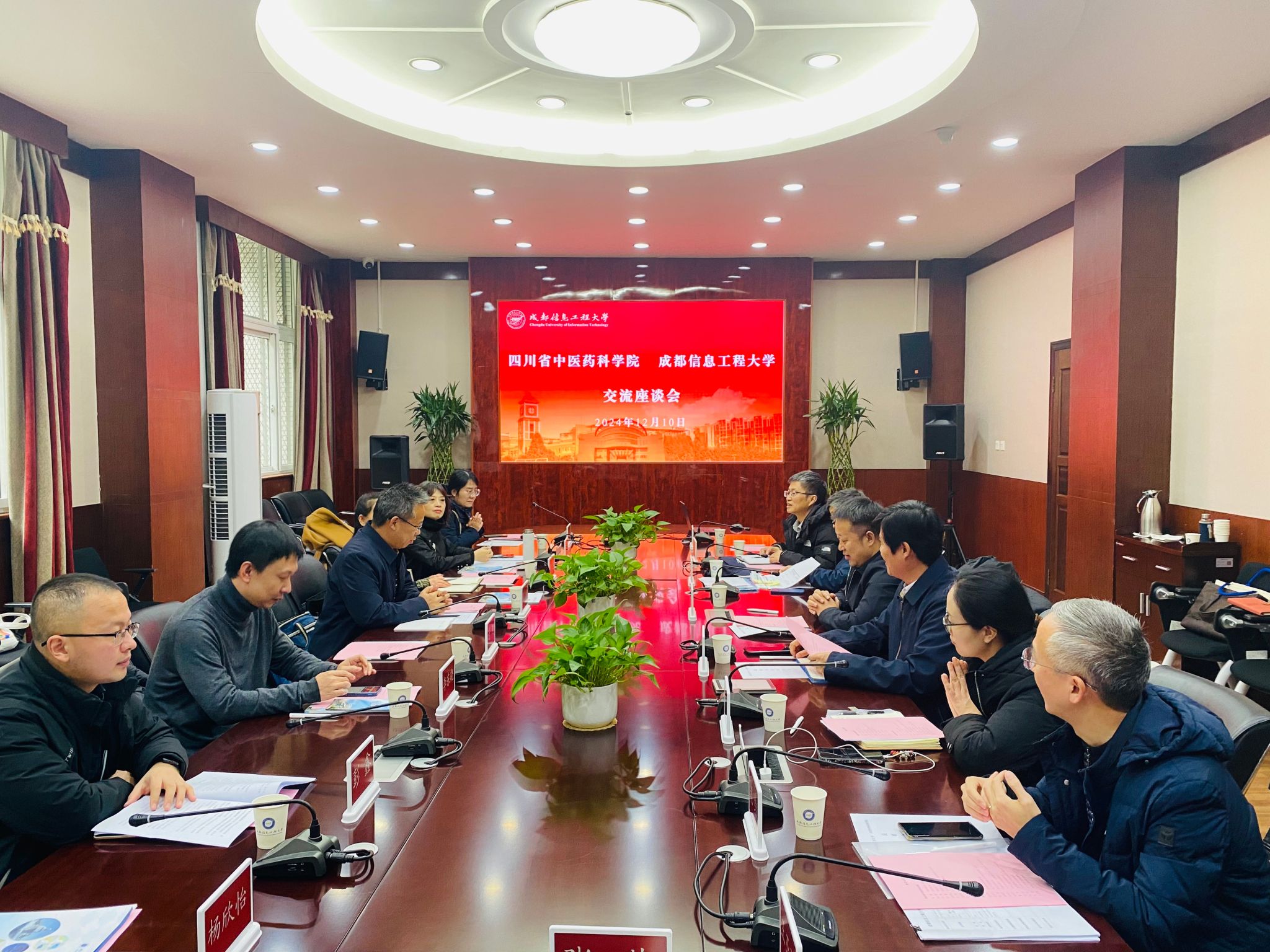 九州(中国)科技处、后勤基建处、大气科学学院、软件工程学院等部门负责人及相关学院教授;四川省中医药科学院党政办公室、科技产业处、中医药临床基础与文献信息研究所等部门负责人及相关医学专家参加会议。