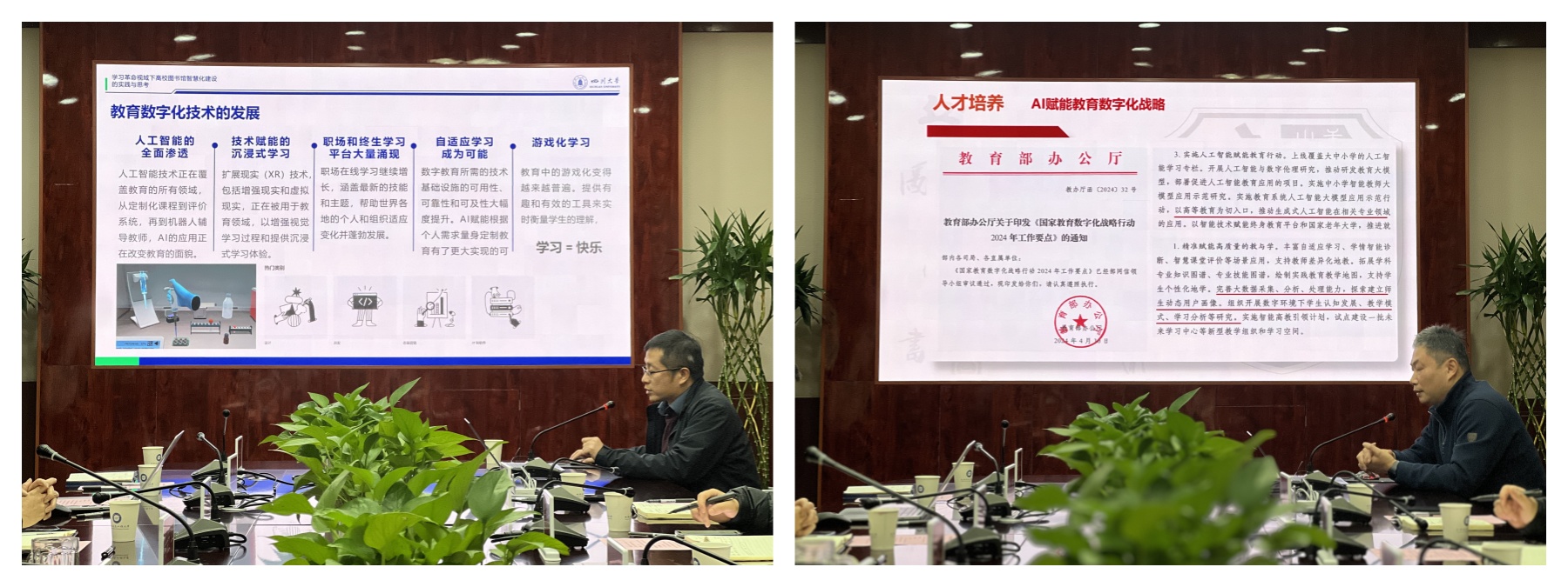 与会的各职能部门负责人就学校图书馆信息化建设中的技术支持、资源应用、学生培养、人才引育、资金保障等方面进行了深入交流和讨论,提出了许多建设性的意见和建议。