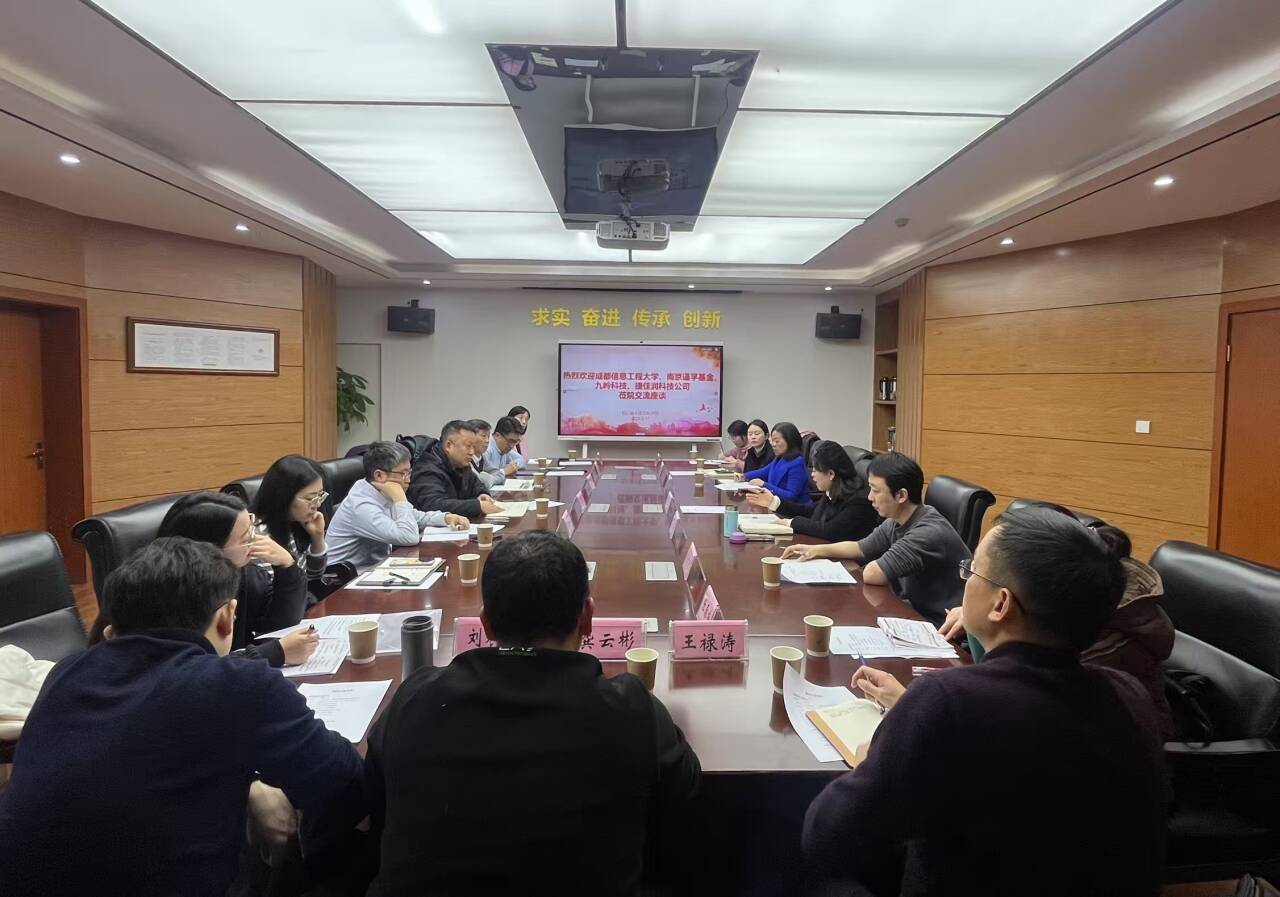 南京谨孚基金刘辰雨,九岭科技龚云彬,捷佳润科技王禄涛,学校大气科学学院教授王式功,后勤基建处副处长李永红等参加交流座谈。