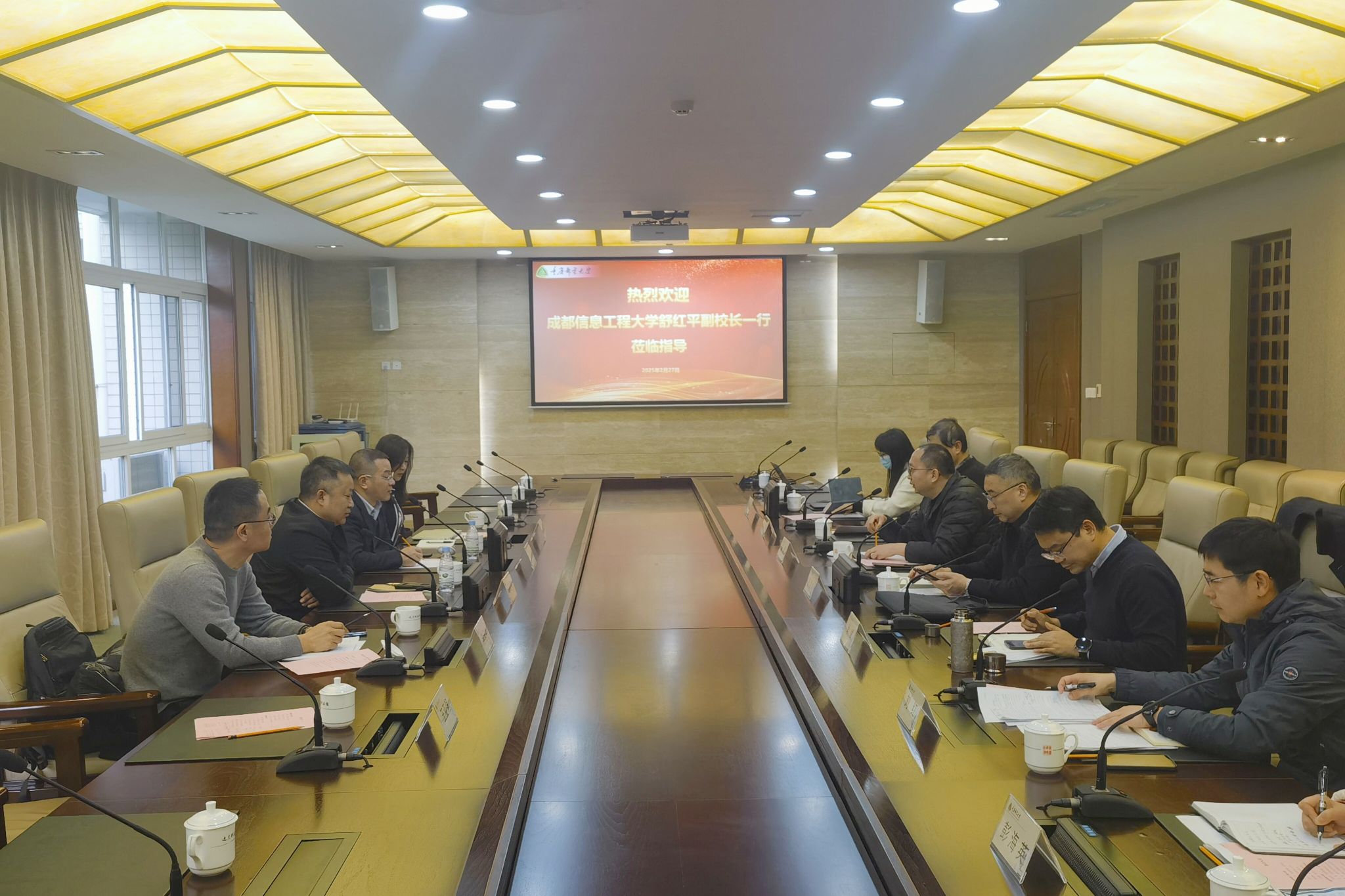 【本网讯】2月27日,学校党委常委、副校长舒红平带队前往重庆邮电大学开展科研政策与信息化建设工作调研。重庆邮电大学党委常委、副校长张清华参加座谈交流。
