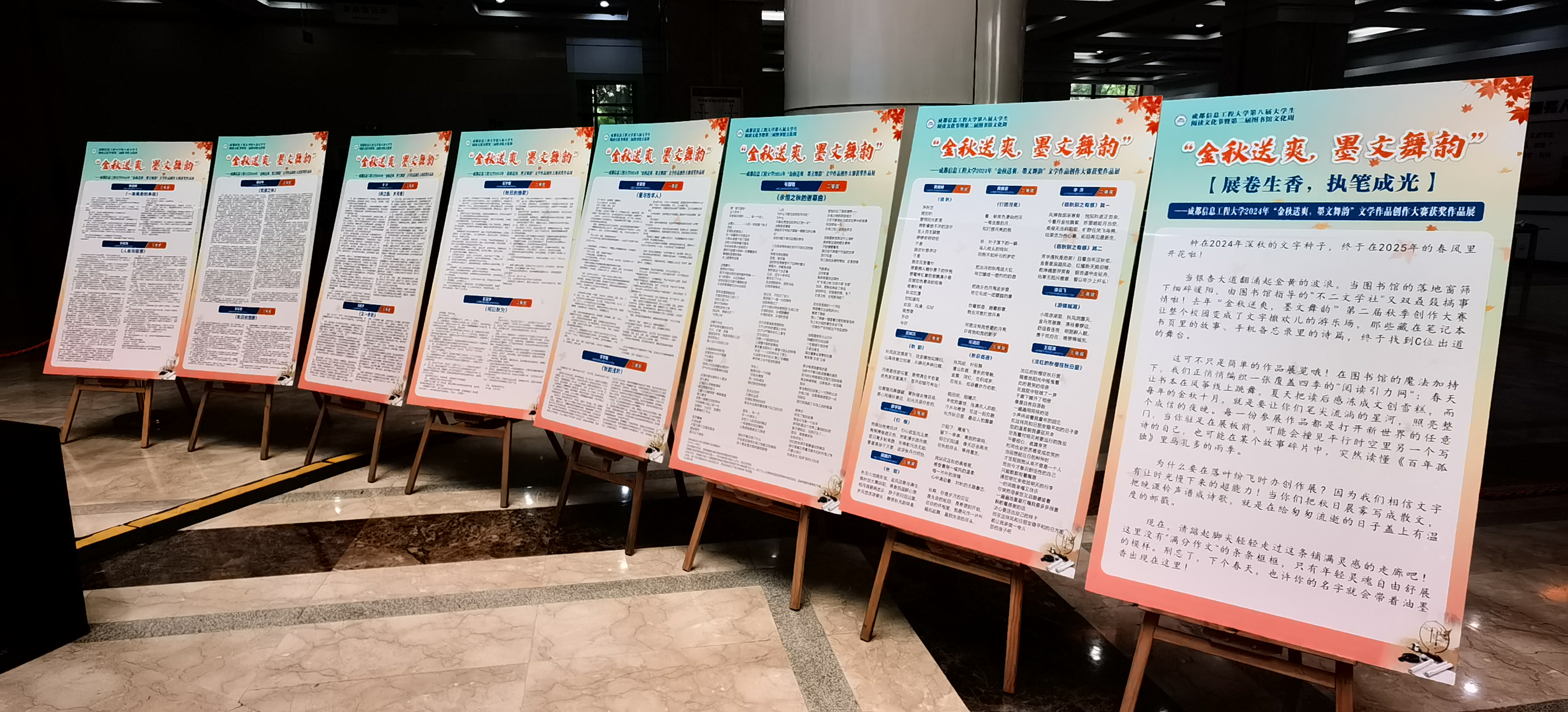 “展卷生香 执笔成光”文学作品创作大赛获奖作品展,集中呈现2024年成信学子文学风采;中国铁道出版社“书香致远 智启未来”精品教材展,助力教育教学资源精准对接;此外,4月25日“光影解码未来”影视鉴赏分享交流会,将带领师生解析经典影片中的智慧哲思。
