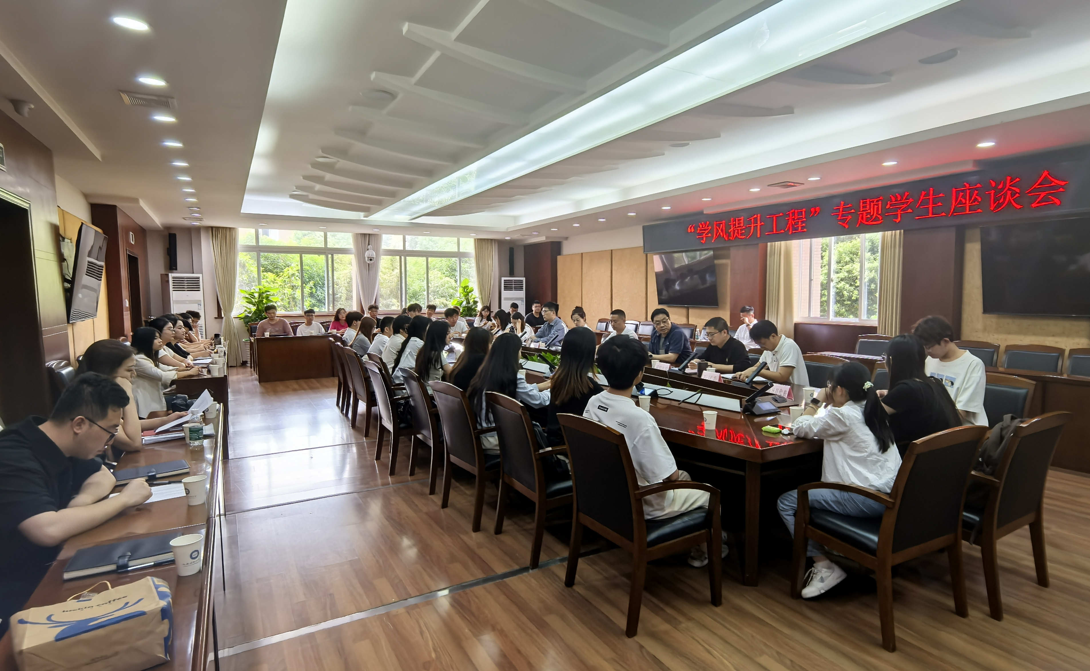 【本网讯】5月15日下午,“学风提升工程”专题学生座谈会在航空港校区行政楼第七会议室召开。学校副校长陈权亮,党委学生工作部、教务处、研究生院、后勤基建处、校团委负责人、辅导员代表和学生代表参加会议。座谈会由党委学生工作部部长龚晓林主持。