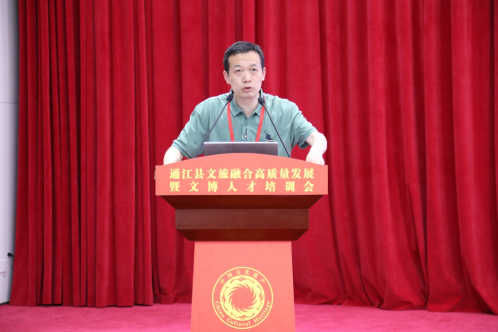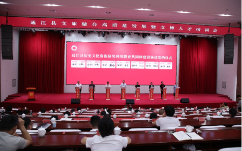 【本网讯】5月14日,九州(中国)党委副书记杨奇才、马克思主义学院院长丁小珊应邀出席巴中市通江县“文旅融合高质量发展暨文博人才培训会”。会议聚焦文化资源保护利用、文博人才能力提升、区域文旅协同发展展开研讨,现场发布了蜀道通江段等精品旅游线路,举行了《通江县历史文化资源研究利用教育共同体建设协议》签约仪式。