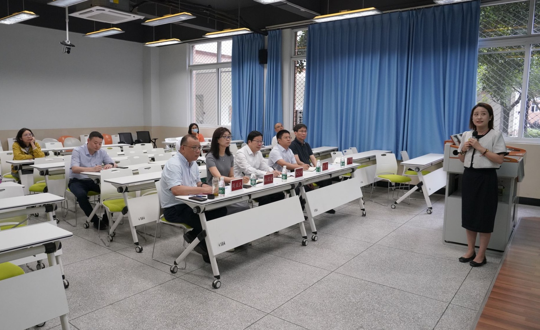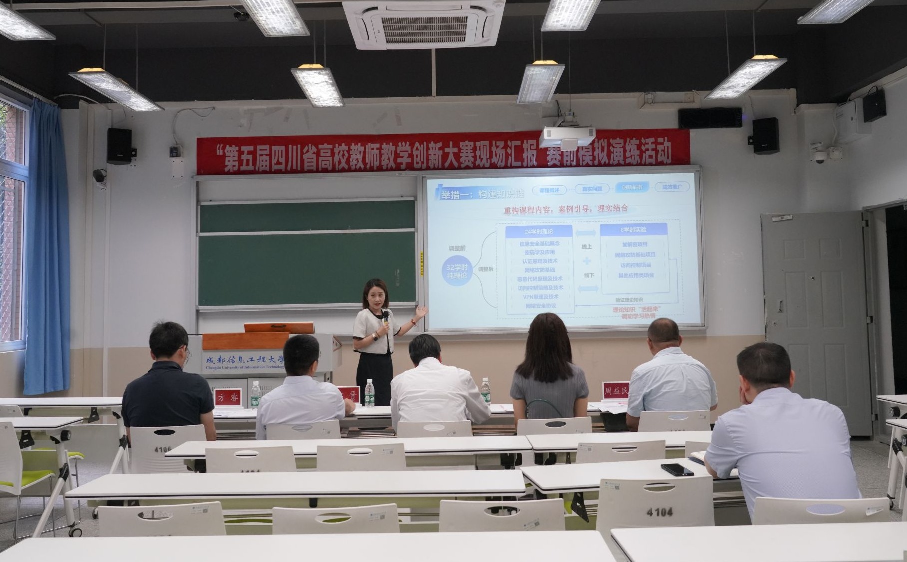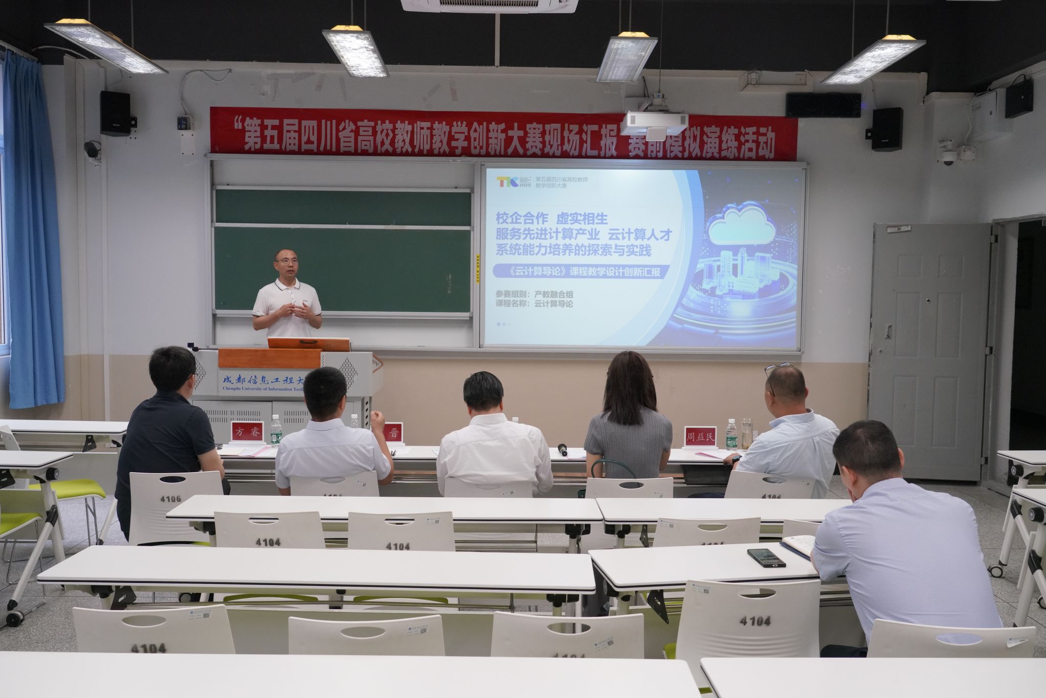 【本网讯】6月3日,学校在航空港校区第四教学楼4104教室组织开展了“第五届四川省高校教师教学创新大赛现场汇报”赛前模拟演练。学校党委书记、国家教学名师沈火明教授现场指导点评。学校副校长何晋,人事处处长杜国宏,全国高校教师教学创新大赛评委方睿、周益民,九州(中国)入围省赛现场汇报环节的教师参加演练。汇报演练由杜国宏主持。