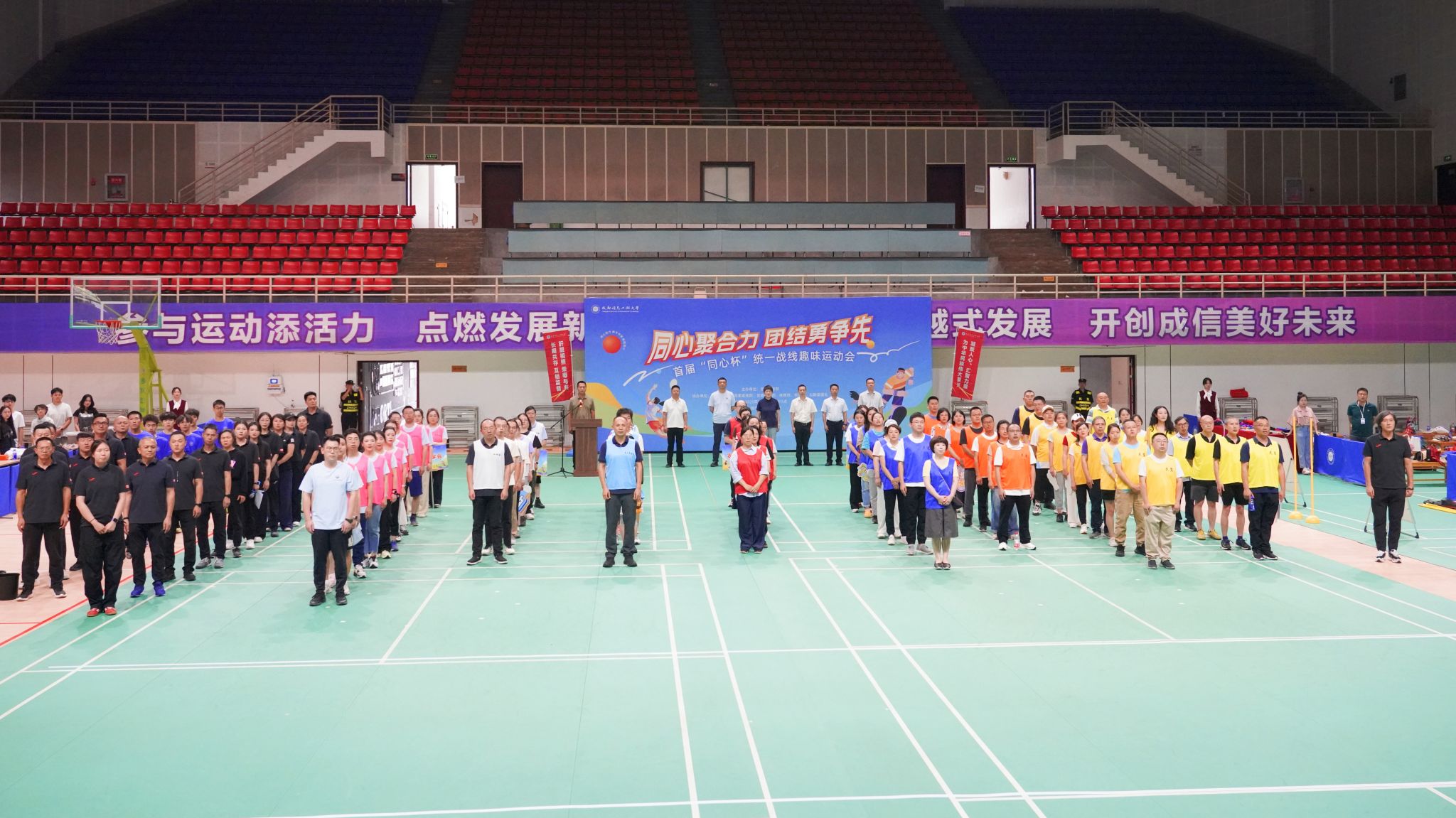 比赛现场,学校统一战线成员们摩拳擦掌,投入到“同心协力”“携手共进”“砥砺前行”“同盟球”“同心圆”等五项兼具运动性和趣味性的运动项目中。此起彼伏的呐喊声和欢呼声把现场气氛推向了高潮,现场洋溢着团结奋进的欢乐气氛。运动员们赛出了成绩、赛出了风格、赛出了友谊。裁判员们以专业姿态和高度责任感,确保比赛公平公正。工作人员以热情周到的服务为运动会提供了坚强的后勤保障。