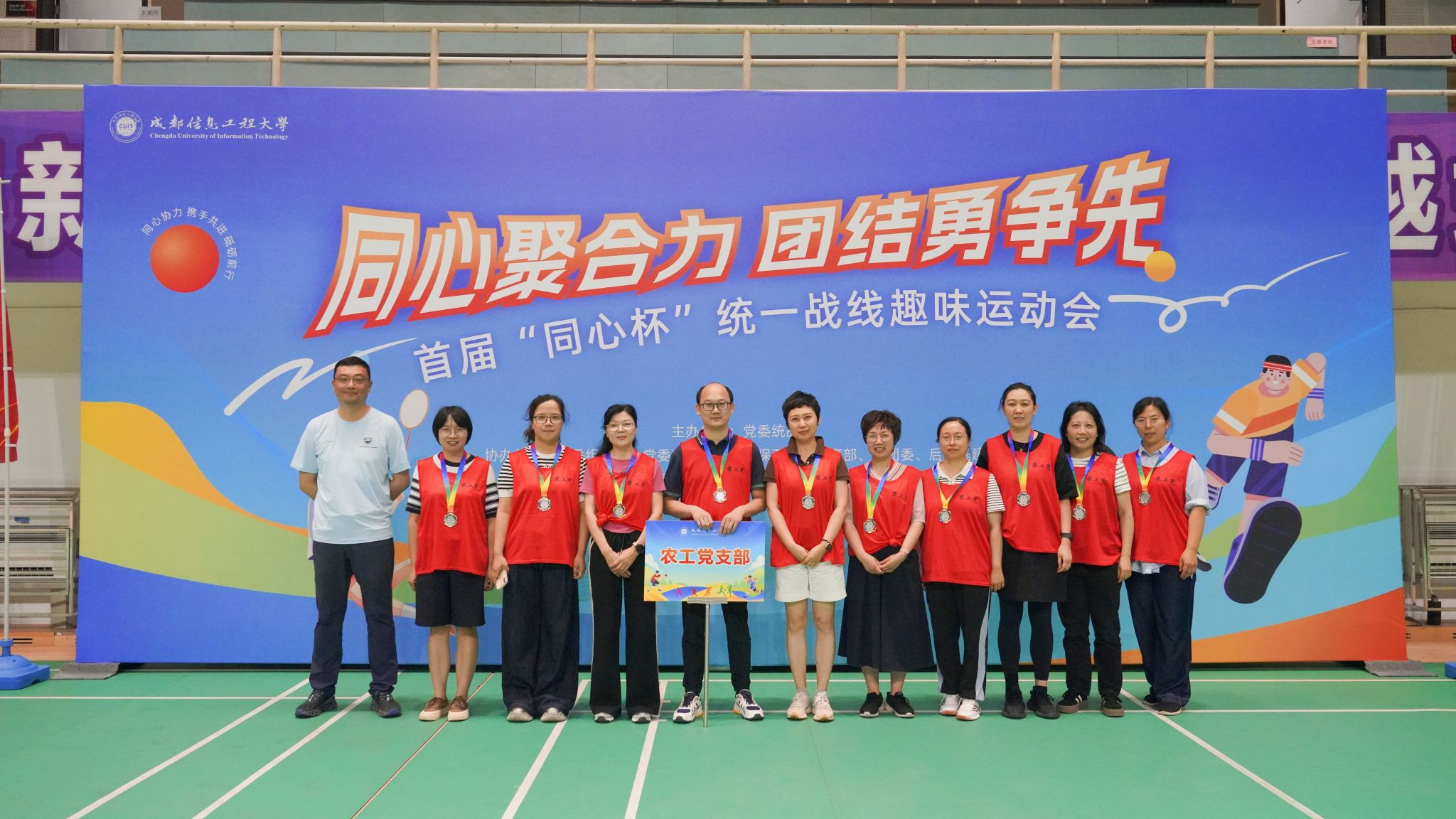 【本网讯】为加强统一战线成员之间沟通交流和团结协作,展现学校统一战线成员“同心聚合力、团结勇争先”的精神风貌,6月5日下午,学校党委统战部联合党委组织部、党委宣传部、党委保卫部、体育部、校团委、后勤基建处在航空港校区体育馆举办首届“同心杯”统一战线趣味运动会和游园会。省纪委监委驻校纪检监察组组长、学校党委副书记、纪委书记王琪,党委副书记杨奇才,党委常委、副校长吴锡、陈权亮、何晋,党委常委、党委组织部部长、党委统战部部长熊建,党委常委、党委宣传部部长、机关党委书记张小红参加活动。学校九三学社委员会、民革支部、民盟支部、民建支部、民进支部、农工党支部、知联会和欧美同学会等8支队伍100余人,在运动中充分展现了“大团结、大联合”的精神面貌。