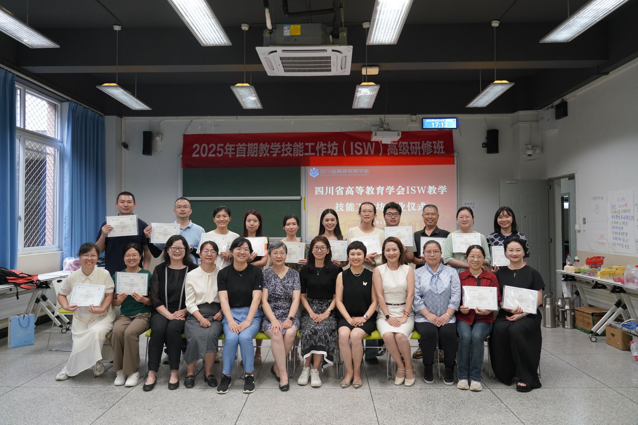 【本网讯】6月26日,由四川省高等教育学会主办、学校人事处(党委教师工作、教师发展中心)承办的2025年首期ISW教学技能工作坊培训结束。本次培训为期3天,特别邀请北京师范大学魏红指导工作,校内已取得引导员资质的朱烨、陈琪、王祖俪、刘仕筠、陈丹、甄小琼担任本次培训引导员,来自省内高校和校内各学院共15位骨干教师参加了本次培训。