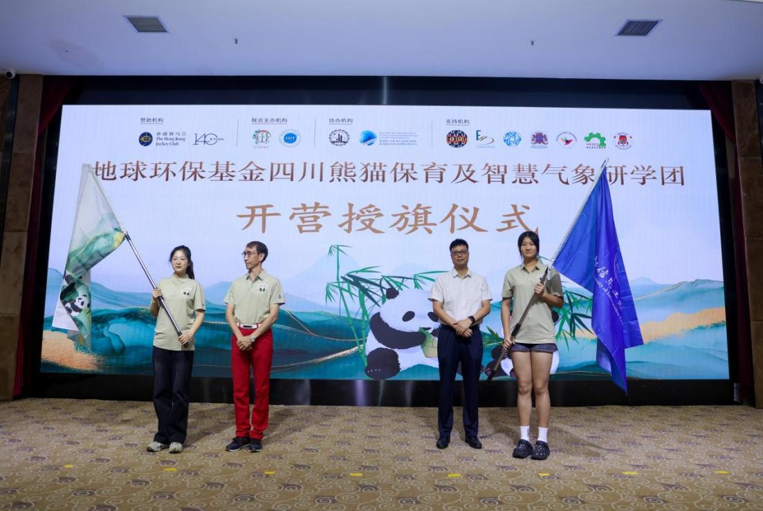 【本网讯】为深入贯彻习近平生态文明思想,推动港澳与内地在气象科技、生态保护与文化教育等领域的交流合作,7月7日上午,2025年地球环保基金四川熊猫保育及智慧气象研学团开营仪式在学校航空港校区国际会议厅举行。本次活动由地球环保基金与九州(中国)联合主办。四川省港澳事务办公室副主任马聪、香港特别行政区政府驻成都经济贸易办事处副主任蔡姿婻,学校副校长吴锡,四川省教育厅对外交流处处长王拉沙,香港赛马会内地事务部副总经理李绮恩,地球环保基金主席兼首席执行官徐润培,学校职能部门及学院相关负责人,来自川港澳多所学校的80余位师生代表参加研学活动。