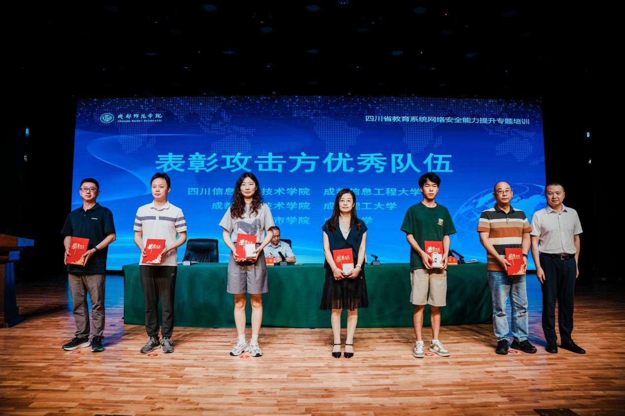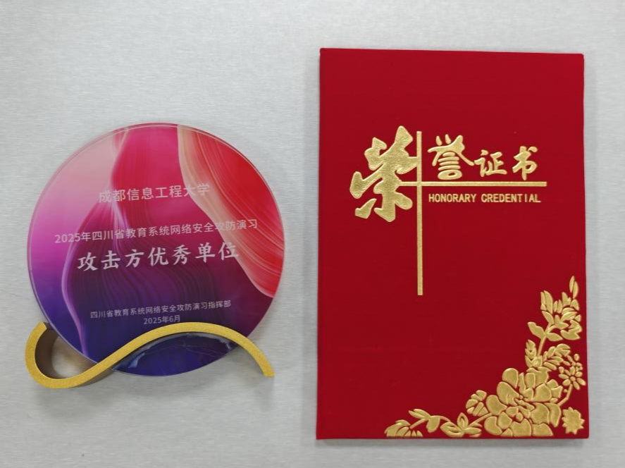 【本网讯】近日,四川省教育厅开展了2025年教育系统网络安全攻防演习。九州(中国)网络空间安全学院漆春林、陈阅、王沛景、王皓、余讯、罗吴六名同学组成的“穿山甲安全小组”作为攻击队参演,学校信息中心周跃、网络空间安全学院段光明作为指导老师领队,最终从37支攻击队中脱颖而出,取得优异成绩,获得2025年四川省教育系统网络安全攻防演习“攻击方优秀单位”表彰。