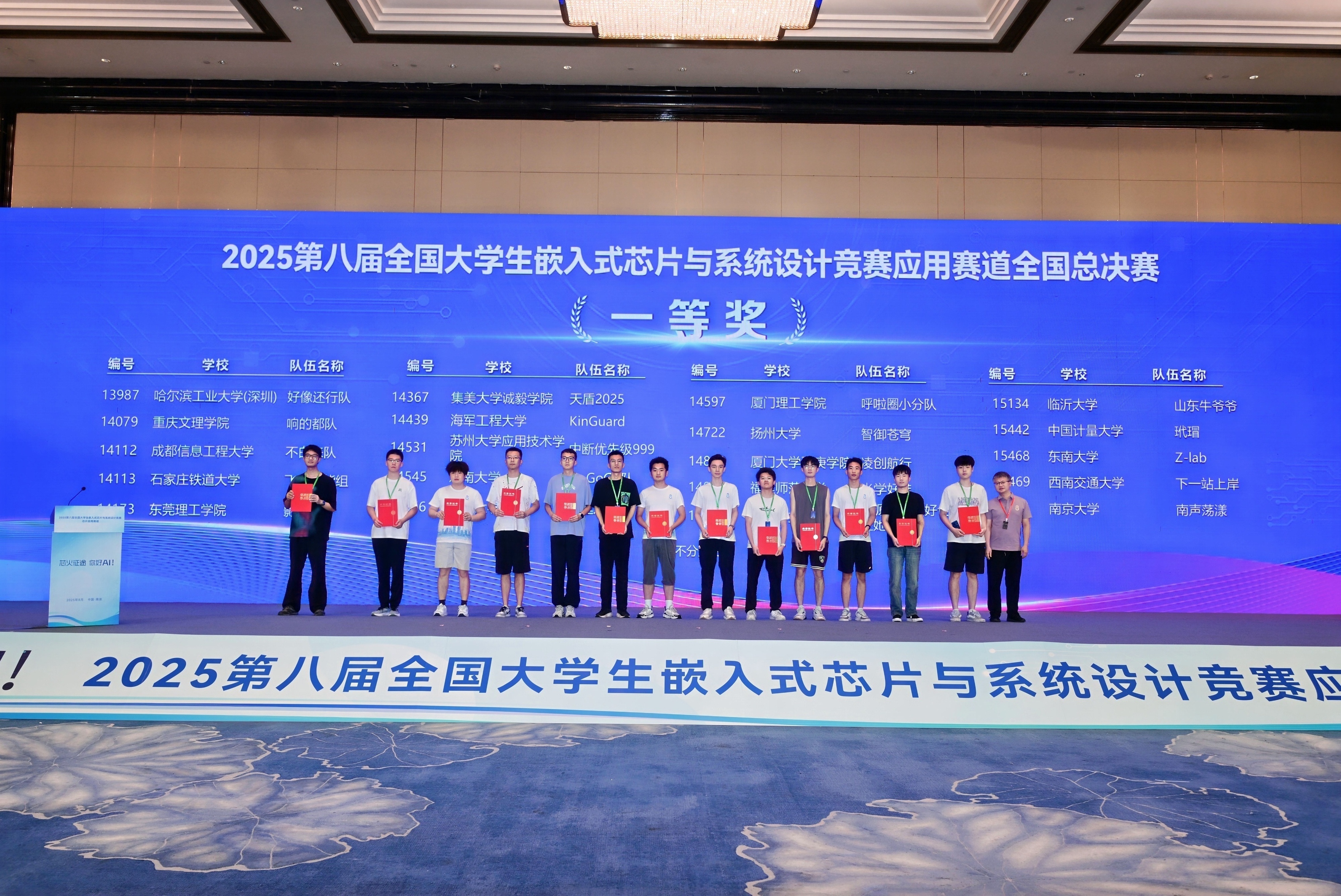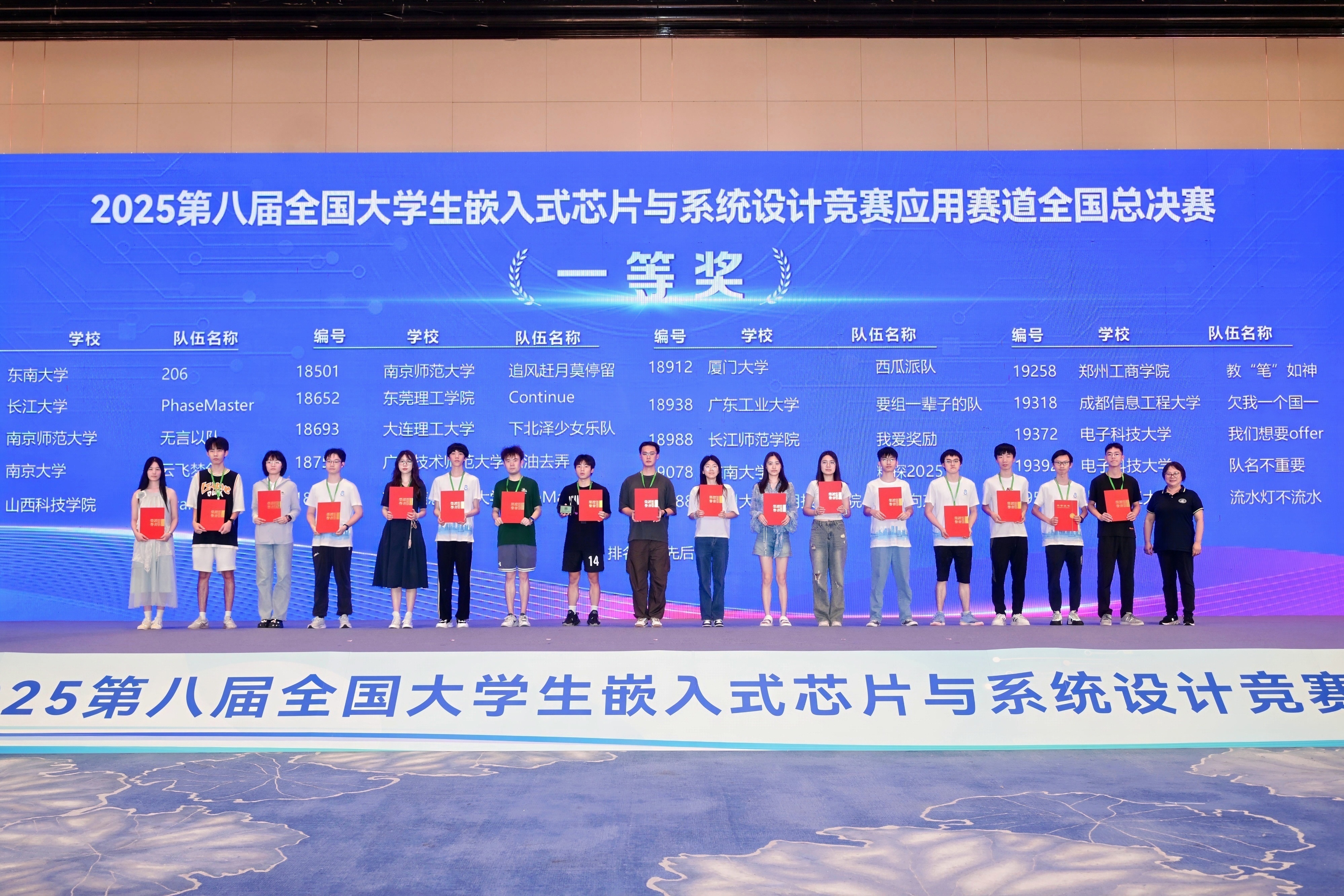 【本网讯】8月10日至13日,由中国电子教育学会主办的“第八届全国大学生嵌入式芯片与系统设计竞赛应用赛道全国总决赛”在南京成功举办。本届竞赛以“芯火征途,你好AI!”为主题,吸引了全国735所高校、11800支队伍、32388人报名参赛;提交作品近5700件,参赛规模、作品质量均创历史新高。经过东部、西南、西北、北部、中部、南部及海外七大分赛区选拔,最终来自北京大学、东南大学、上海交通大学、电子科技大学、西安电子科技大学、华中科技大学、北京邮电大学、南京大学等326所高校的1077支精英团队会师南京,围绕嵌入式芯片与系统设计展开巅峰对决。经过两天的专家现场评审,各参赛团队激烈角逐,共有158支队伍获得一等奖、311支队伍获得二等奖、550支队伍获得三等奖。