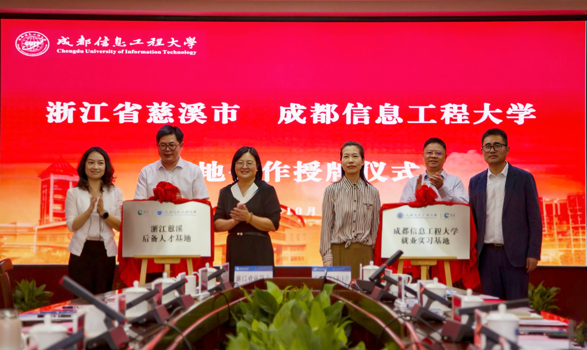 【本网讯】为深化产教融合、促进毕业生高质量充分就业,10月16日,学校在行政楼第七会议室举行与浙江省慈溪市校政企合作座谈会暨签约授牌仪式。慈溪市人民政府副市长鲍百易、学校副校长何晋参加并讲话。