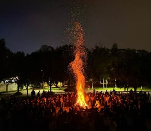 文艺演出结束后,学校党委常委、统战部部长、管理学院党委书记刘敦虎点燃了象征团结与兴旺的篝火,盛大的篝火晚会也随之正式开启。熊熊篝火映照下,各族师生手牵手、心连心,围着跃动的火焰载歌载舞,烤土豆的香气与欢声笑语交织,璀璨星光与温暖火光相映。这一刻,来自不同民族、不同地域的师生在歌舞中深化了情谊,在交流中凝聚了共识。