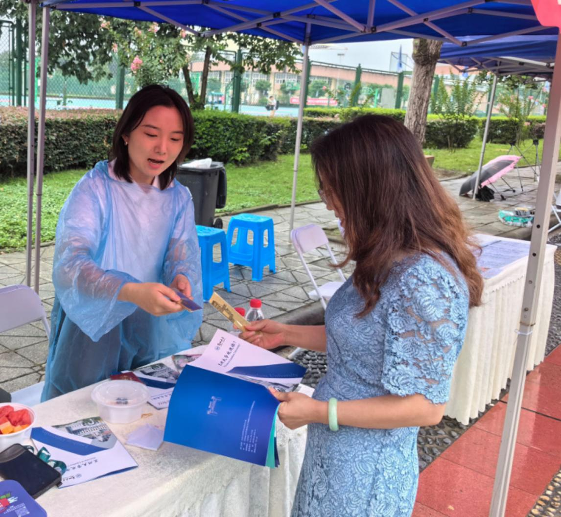 活动现场虽然阴雨连绵,但老师和同学们的热情丝毫不减。各高校研招办老师耐心地解答考生及家长的疑问,详细介绍各自学校的学科优势、师资力量、科研条件以及招生政策等。活动期间,学校副校长罗小蓉来到现场与参加研招咨询会的老师们、现场咨询的同学们进行了交流,鼓励同学们要勇敢大胆地参与咨询,要早谋划、早打算、早准备,要砺志于行,知难而进,“一鼓作气”全心备考。