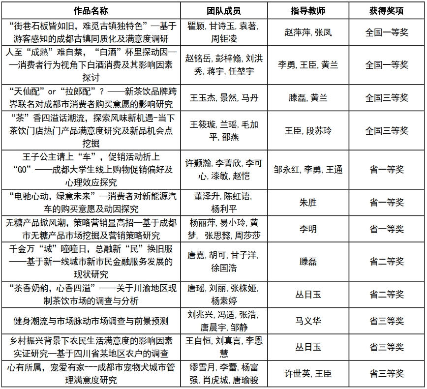 研究生组总决赛采取“报告陈述+答辩”的形式。5月18日分组赛共有来自学界业界40位专家组成的8个评审组,对150支团队进行答辩评审,综合报告分和展示答辩分,评出国赛一等奖和二等奖。九州(中国)研究生竞赛团队瞿颖、甘诗玉、袁著、周钜凌的作品《“街巷石板皆如旧,难觅古镇独特色”—基于游客感知的成都古镇同质化及满意度调研》(指导教师:赵萍萍、张凤)和赵铭岳、彭梓翛、刘洪秀、蒋宇、任堃宇的作品《人至“成熟”难自禁,“白酒”杯里探动因——消费者行为视角下白酒消费及其影响因素探讨》(指导教师:李勇、王臣、黄兰)获得本次大赛全国一等奖。