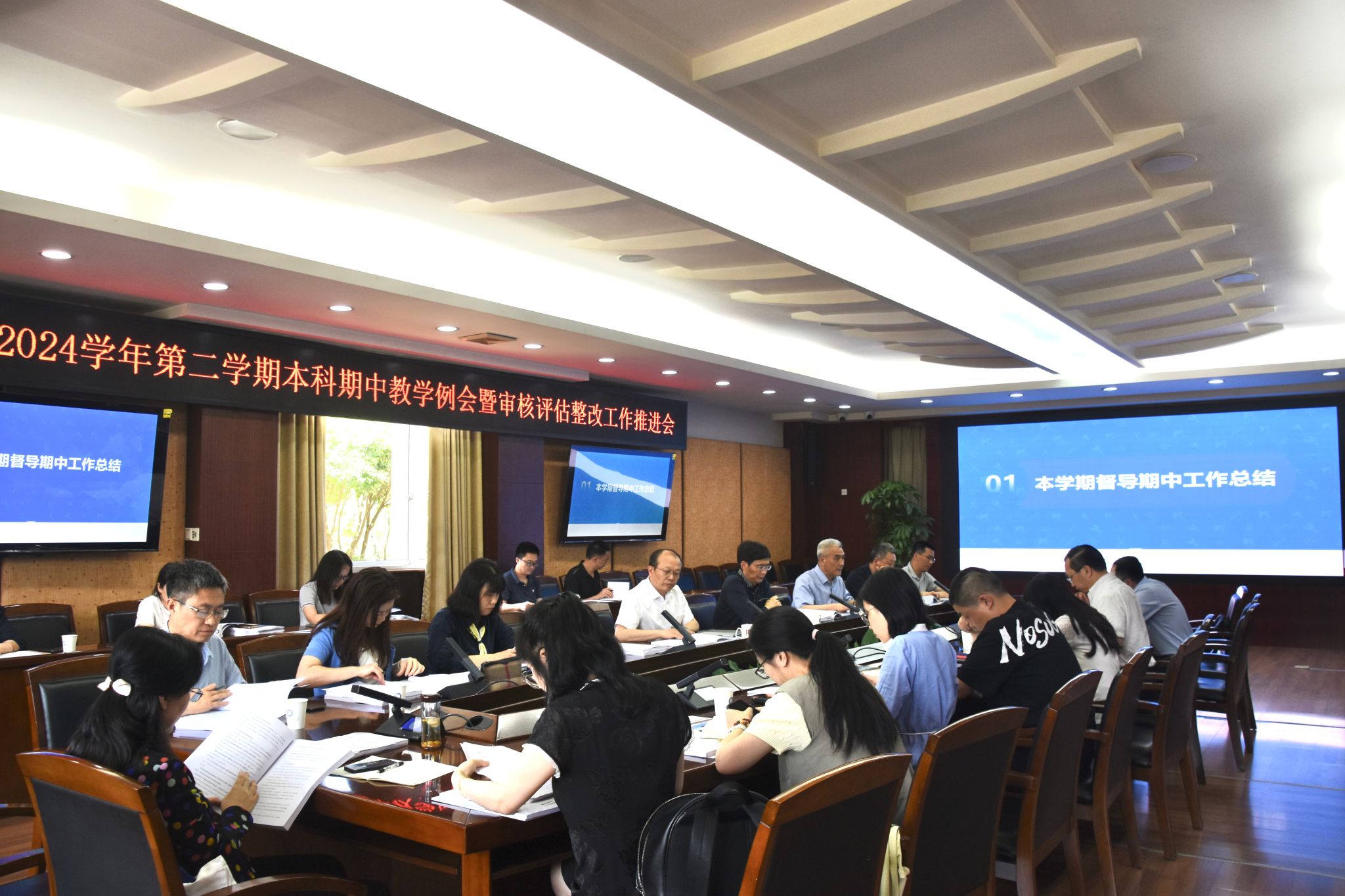 党委学生工作部、后勤基建处、信息中心负责人分别对本学期学风检查与建设、教学环境和教学设施设备检查与改造、信息化教学服务检查与建设等工作开展情况进行了介绍。