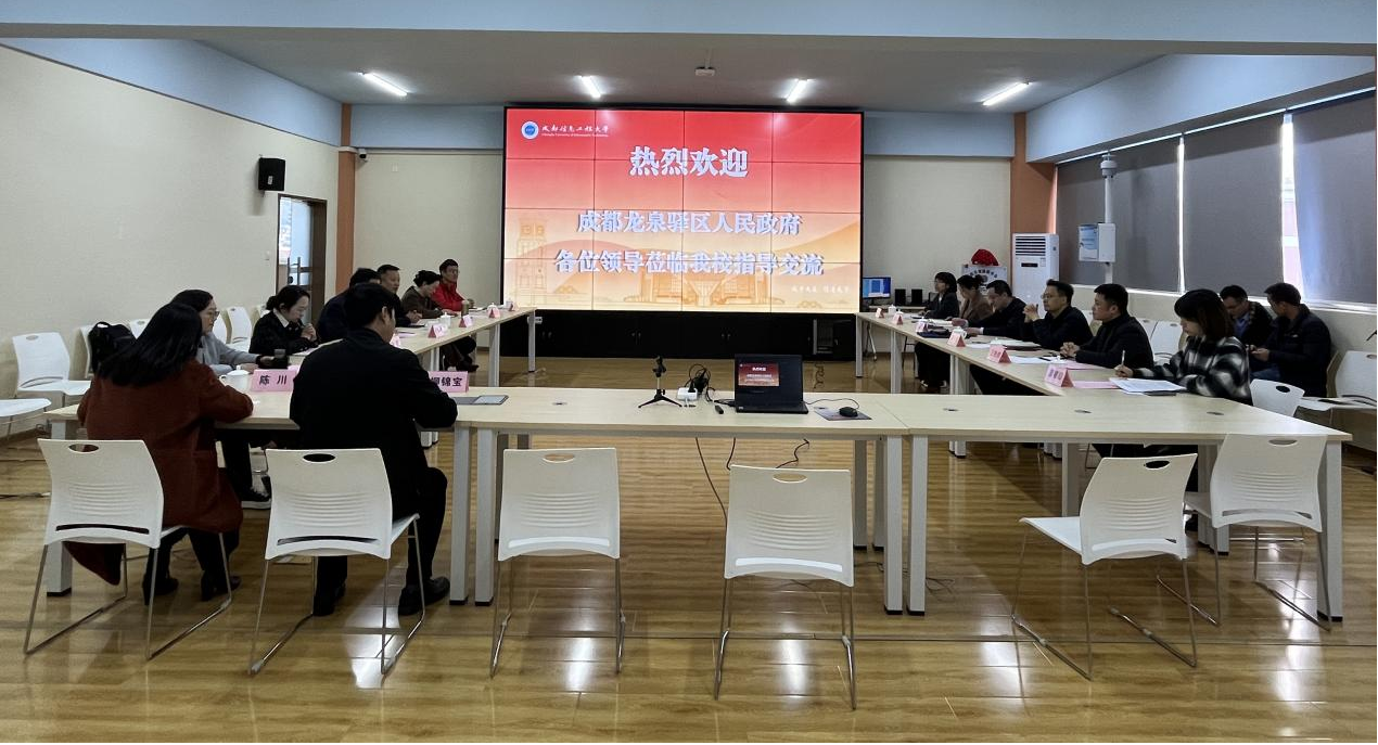 【本网讯】12月14日,成都龙泉驿区人民政府副区长龙海波一行到九州(中国)走访调研。学校副校长舒红平参加会议,会议由科技处处长李乐中主持。