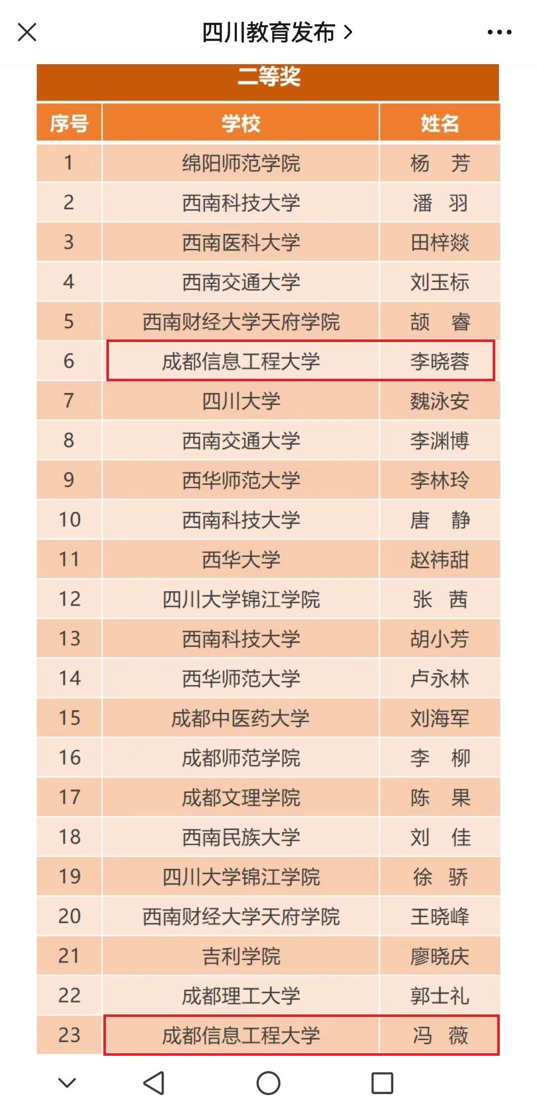 获奖名单