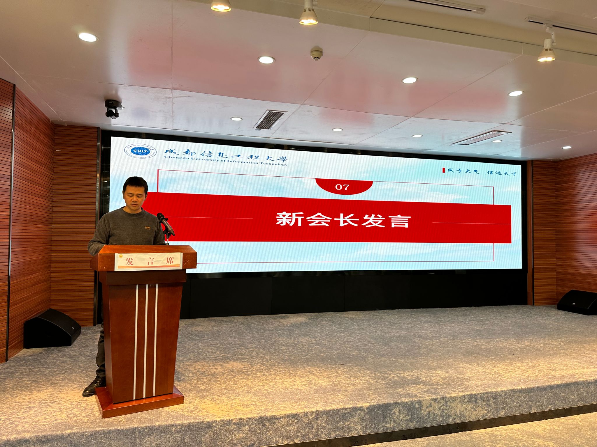 舒红平代表学校向莅临大会的各位校友和来宾表示热烈的欢迎与衷心的感谢,并与大家一起分享了学校的发展历程。他说,学校坚持服务国家战略和地方经济社会发展的初心历久弥新,凝练出“成于大气,信达天下”的大学精神,坚持“以人为本,追求卓越”的教育理念,重点学科持续强化,工、理、管、经、文、法、艺多学科协调发展,办学特色日益鲜明,办学水平不断提高,现已成为中国气象事业、国家统计事业、国防建设事业和四川信息产业人才培养和科学研究的重要基地。每一位成信人兢兢业业、励精图治的不懈奋斗,换来了学校今天的成就,这其中也包括广大校友们的汗水、智慧和鼎立支持。