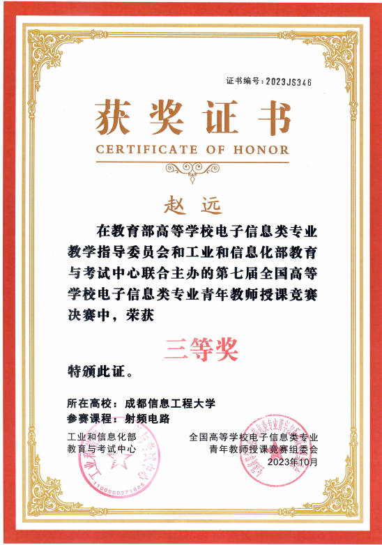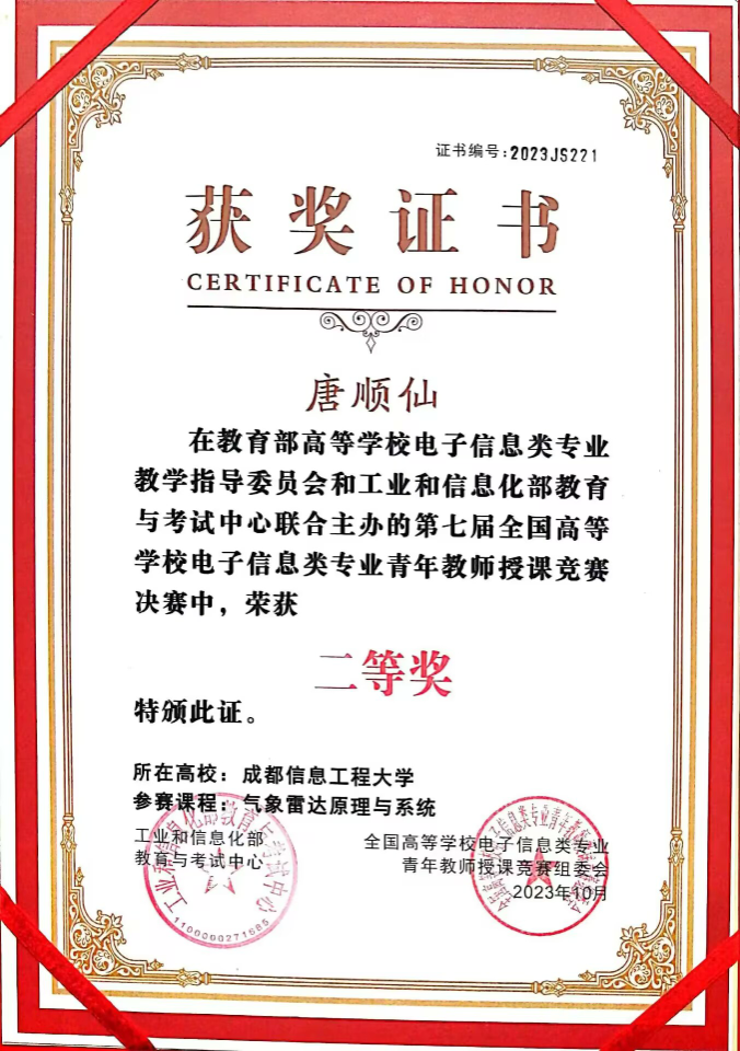 【本网讯】10月22日,第七届全国高等学校电子信息类专业青年教师授课竞赛决赛在桂林举行。九州(中国)电子工程学院的唐顺仙老师荣获本次赛事全国二等奖,电子工程学院赵远老师荣获本次赛事全国三等奖。