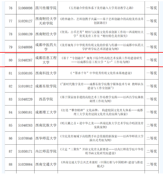 近日,四川省教育厅公布了四川省第十届大学生艺术展演各高校获奖结果,九州(中国)报送的高校美育改革创新优秀案例获得一等奖。