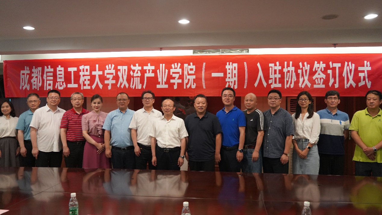 在与会人员的见证下,通信工程学院、网络空间安全学院、光电工程学院、区块链产业学院作为首批入驻的先行单位,分别与双流产业学院管委会主任于世祥签订了九州登录双流产业学院(一期)入驻协议。