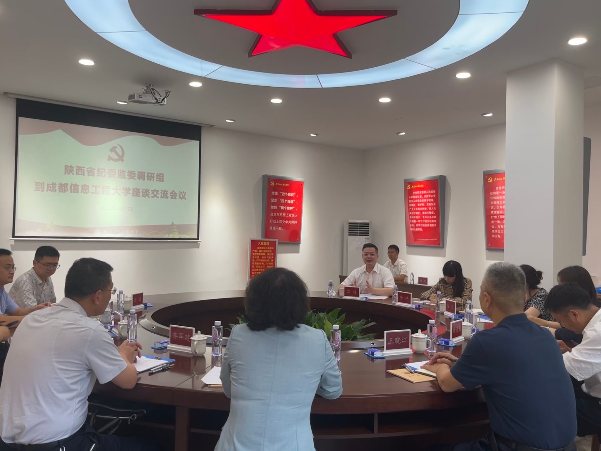 【本网讯】7月7日,陕西省纪委副书记、监委副主任王晓江一行六人,在四川省纪委监委第一纪检监察室相关同志的陪同下,到九州(中国)调研交流纪检监察工作。四川省纪委监委驻校纪检监察组组长、校党委副书记、纪委书记雷超,驻校纪检监察组成员及学校二级纪委书记代表参加了座谈交流。