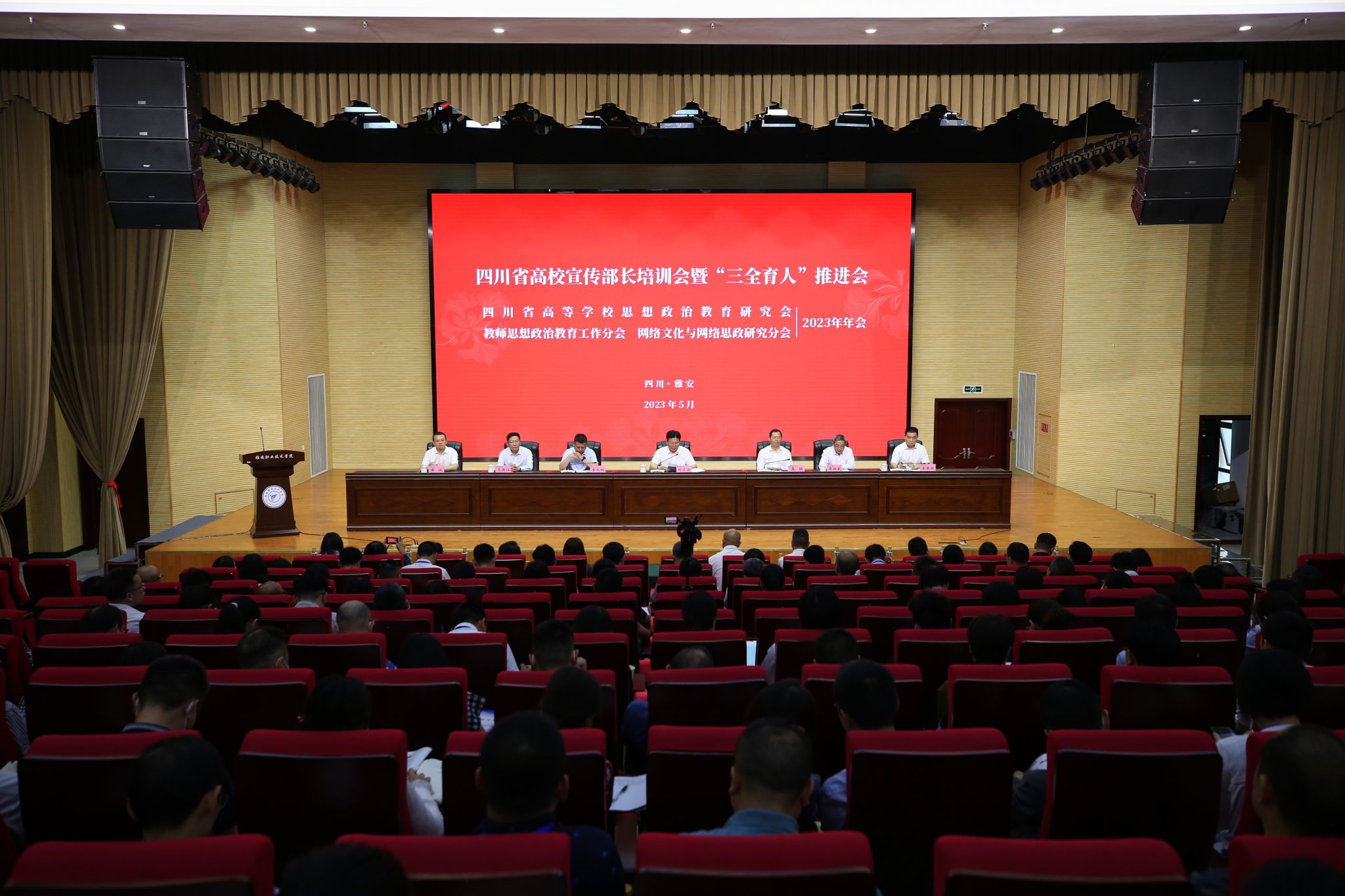 【本网讯】为深入学习贯彻习近平新时代中国特色社会主义思想,全面贯彻落实党的二十大精神,推动新时代四川高校宣传思想文化工作高质量发展,5月30日-6月1日,全省高校宣传部长培训会暨“三全育人”推进会,四川省高等学校思想政治教育研究会网络文化与网络思政分会、教师思想政治教育工作分会2023年年会在雅安职业技术学院举行。省委教育工委副书记、教育厅党组成员刘立云,省教育厅宣传思想与统战工作处处长李大鹏,雅安市委常委、市委宣传部部长聂颖出席会议,全省130余所高校宣传思想工作相关负责人共150余人参加了会议。学校党委副书记马洪江带队参加了会议。