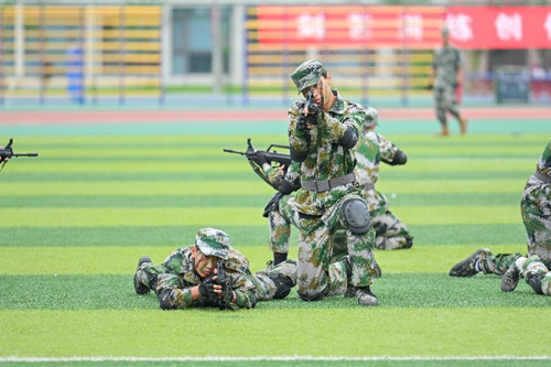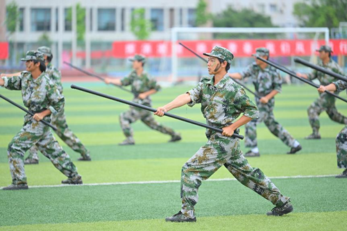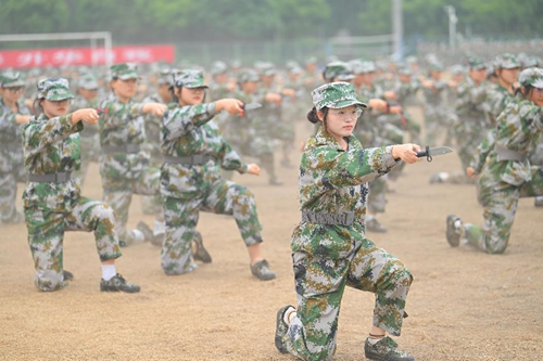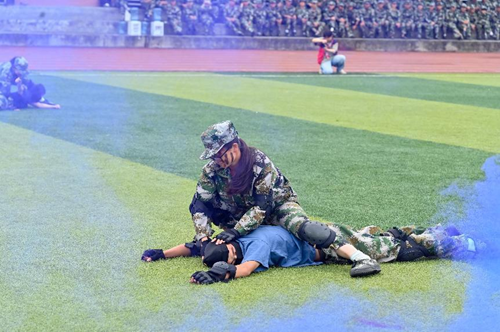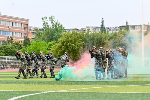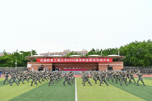 汇报表演伴随着《分列式进行曲》拉开帷幕。标兵就位,迈着矫健的步伐引领着方队依次通过主席台接受领导的检阅。他们队列整齐、口号响亮、朝气蓬勃、斗志昂扬,充分展现了九州(中国)2022级学生奋发向上的精神风貌和军训工作的丰硕成果。同学们沉着、自信的精神面貌赢得了现场师生的阵阵掌声;分列式方队井然有序、整齐划一的步伐,热烈的青春肆意挥洒在洪亮的口号声里;匕首操方队的迅猛刺激、身姿挺拔,彰显着军营之花的英姿飒爽和青春魅力;特种战术方队在爆破声响中迅捷行动,在硝烟弥漫中昂首向前,他们从容不迫,展现铮铮军魂,他们脚步变换,尽显飒爽英姿;刚劲有力的擒敌拳,是学子们热情勇毅与追求卓越的印证;铿锵有力的应急棍,表现了学子们不畏困苦的英勇气魄;同学们用花式队列摆出“CUIT”、“中国地图”等图样的队形,表达了成信学子对党和祖国的热爱以及对学校的祝福,同学们步伐整齐、热情饱满、斗志昂扬,展现了成信学子锐意进取、追求卓越的精神风貌。