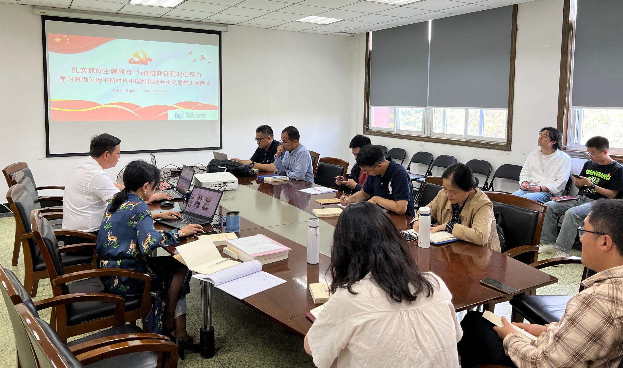 【本网讯】4月27日,区块链产业学院党委在信息楼三会议室召开了教工党支部党员大会,会议由学院党委书记林细俤主持,全体教工党员参加,学生正式党员列席大会。