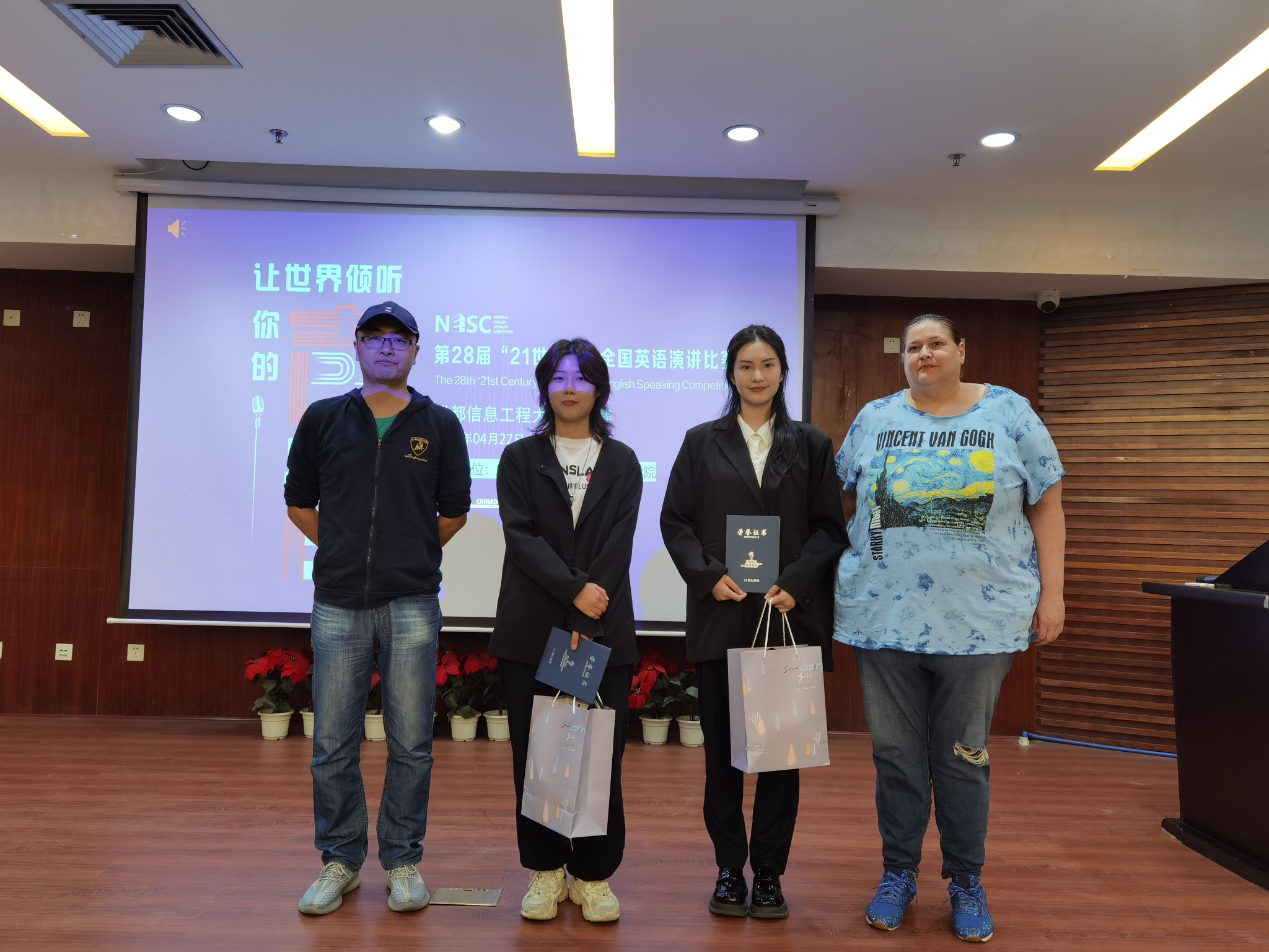 校园决赛分为定题演讲、即兴演讲、现场问答三个环节。在定题演讲环节,七名选手围绕“My Interpretation of Civilization”这一主题分别阐述了自己的观点;在即兴演讲环节,选手们就时事热点、社会生活等话题呈现了精彩的演讲;在问答环节,选手们思维敏捷、妙语连珠,充分展现了当代大学生的风采。经过激烈比拼,最终外国语学院的谢闫佳同学和厉灵慧同学获得特等奖,晋级川渝赛区决赛。