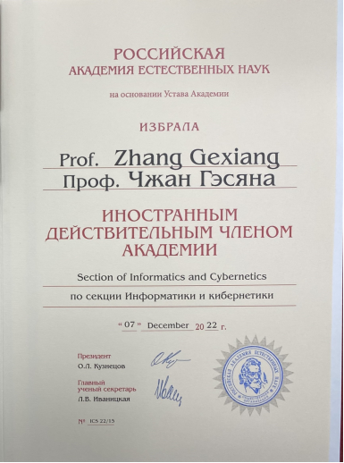 俄罗斯自然科学院外籍院士需考察候选人的学术成就及其影响力,以及在相关领域的地位,通过院士推荐、材料审核、考察了解、专家答辩、学部投票选举、主席团审议等流程,经过多轮严格的学术评审和遴选程序最终确定。鉴于张葛祥教授在人工智能领域做出的杰出贡献,俄罗斯自然科学院最终评选确定其当选为信息学与控制论学部外籍院士。