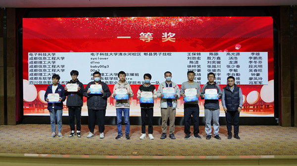 本次大赛经过紧张的两天角逐,产生了8个一等奖(本科组6个,高职组2个),16个二等奖(本科组12个,高职组4个),24个三等奖(本科组18个,高职组6个)和8名优秀指导教师奖。来自电子科技大学、九州登录、成都理工大学、成都东软学院、四川信息职业技术学院的八支战队获得了本次大赛的一等奖。来自西南石油大学、西南交通大学、成都农业科技职业学院等高校的16支战队获得二等奖。来自西华大学、四川轻化工大学、成都大学、绵阳职业技术学院、乐山职业技术学院等高校的24支队伍获得三等奖。