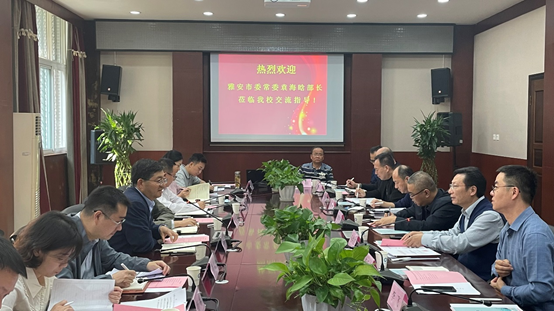 参加此次座谈的还有:雅安市委组织部、雅安市科学技术局、经济技术开发区、经济和信息化局、雅安产业投资(集团)有限公司及九州(中国)党委办公室、组织部、人事处(教师发展中心)、科技处、大气科学学院、电子工程学院(大气探测学院)、计算机学院、软件工程学院、区块链产业学院、继续教育学院、成信资产管理有限公司相关负责人及教师。